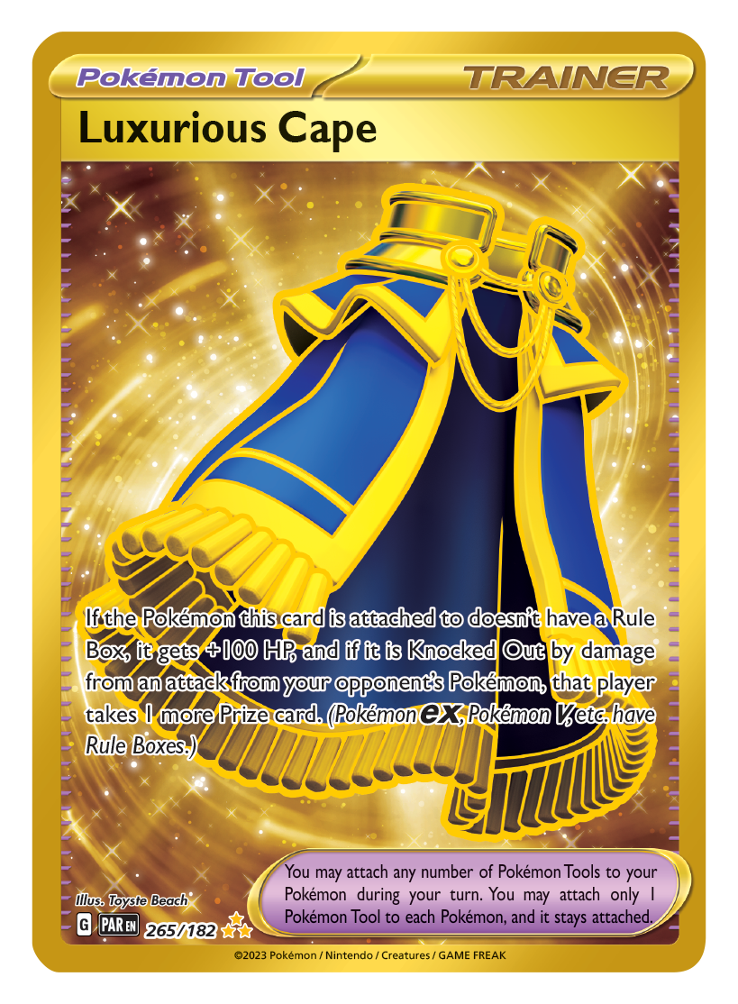 If the Pokémon this card is attached to doesn’t have a Rule Box, it gets +100 HP, and if it is Knocked Out by damage from an attack from your opponent’s Pokémon, that player takes 1 more Prize card.(Pokémon {ex}, Pokémon {V}, etc. have Rule Boxes.)