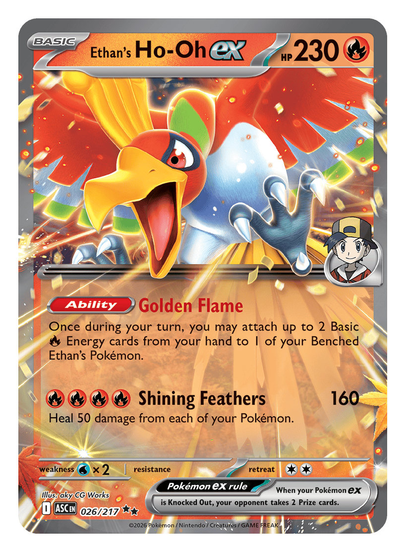 Once during your turn, you may attach up to 2 Basic {R} Energy cards from your hand to 1 of your Benched Ethan’s Pokémon.