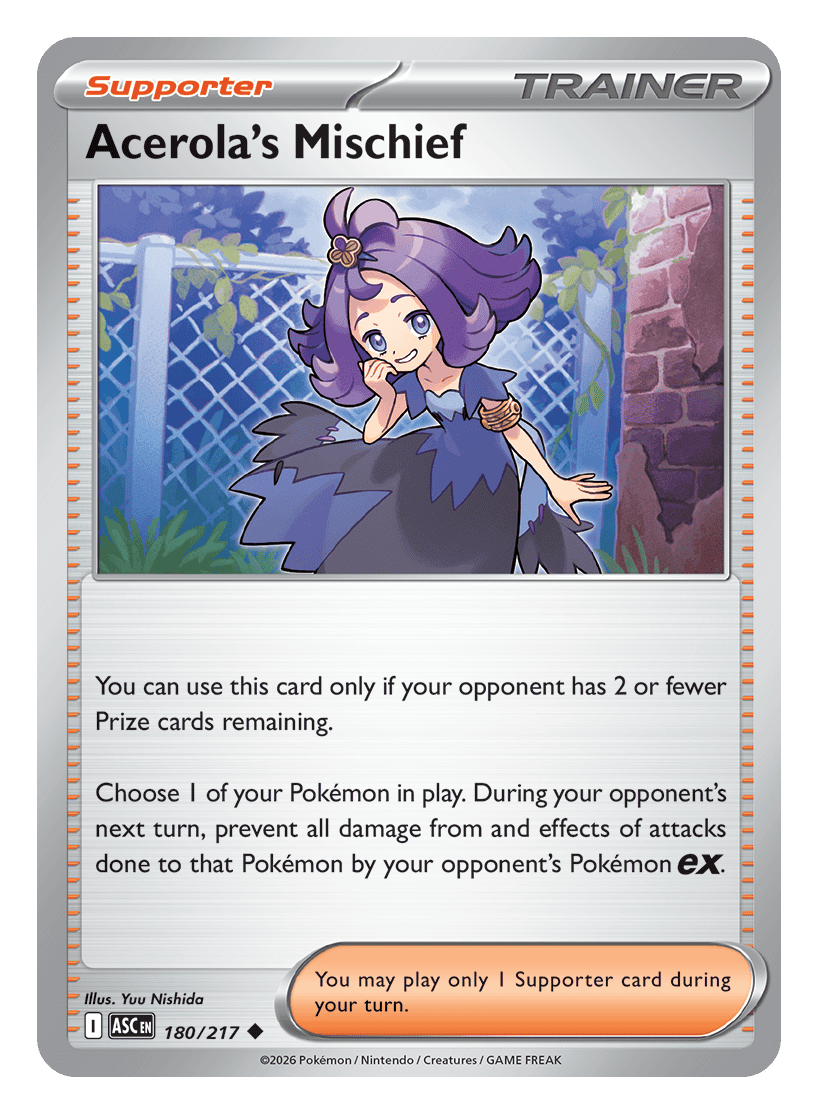 You can use this card only if your opponent has 2 or fewer Prize cards remaining. Choose 1 of your Pokémon in play. During your opponent’s next turn, prevent all damage from and effects of attacks done to that Pokémon by your opponent’s Pokémon {ex}.