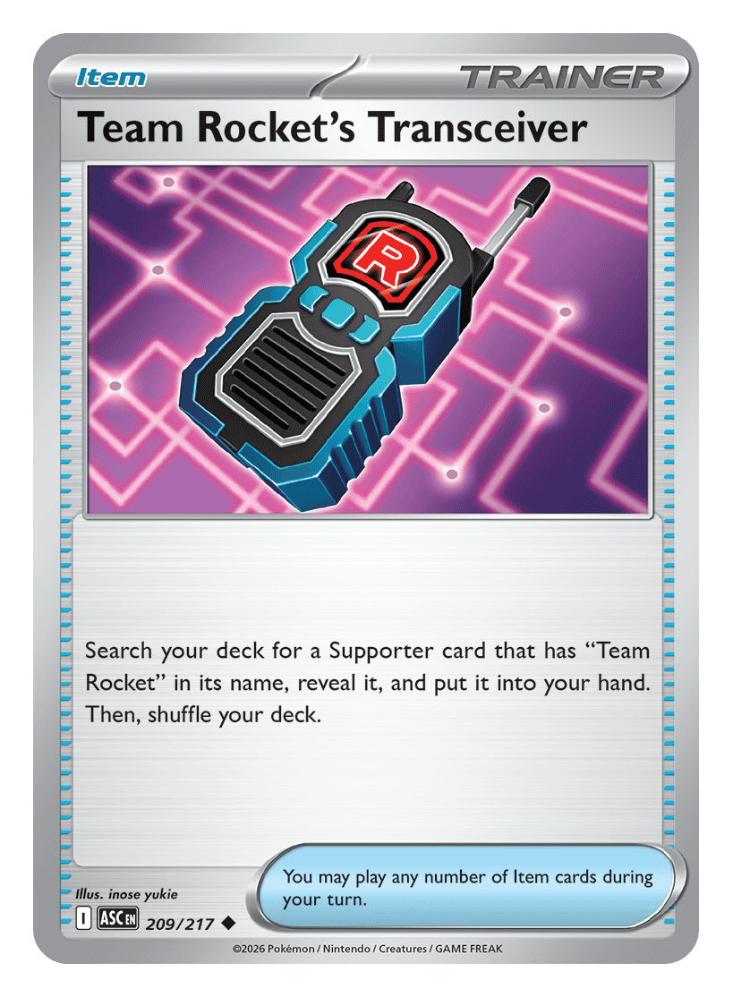 Search your deck for a Supporter card that has “Team Rocket” in its name, reveal it, and put it into your hand. Then, shuffle your deck.