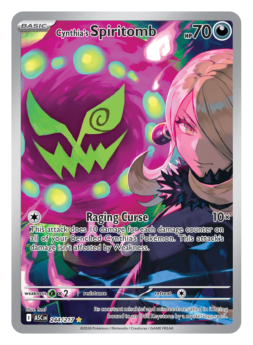This attack does 10 damage for each damage counter on all of your Benched Cynthia’s Pokémon. This attack’s damage isn’t affected by Weakness.