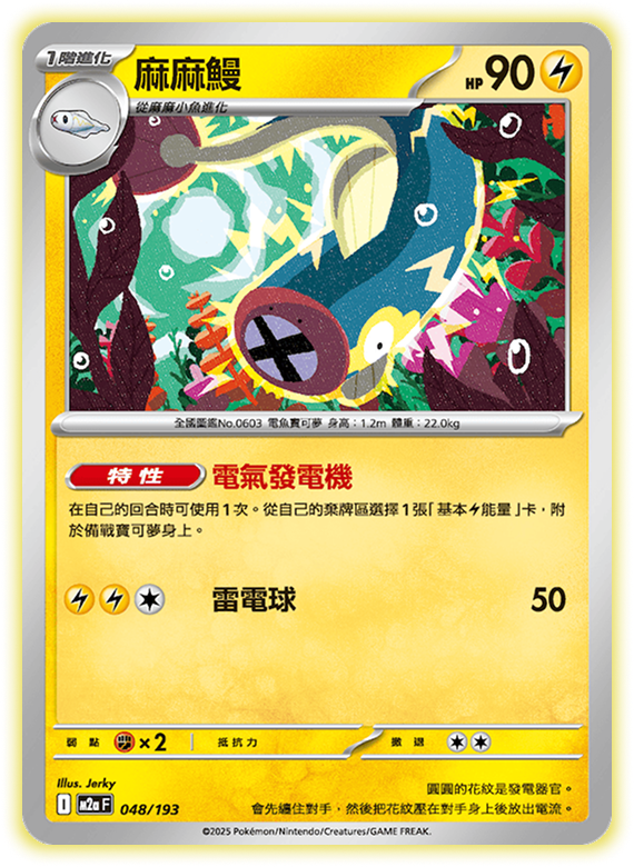 雖然需要丟棄1張手牌,但只要將麻麻鰻放進手牌中就能利用特性「電氣發電機」將棄牌區的能量卡附加於備戰寶可夢身上哦!
