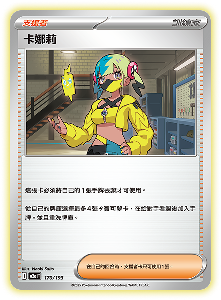 能讓你從牌庫中選擇4張雷寶可夢卡加入手牌中的支援者卡。