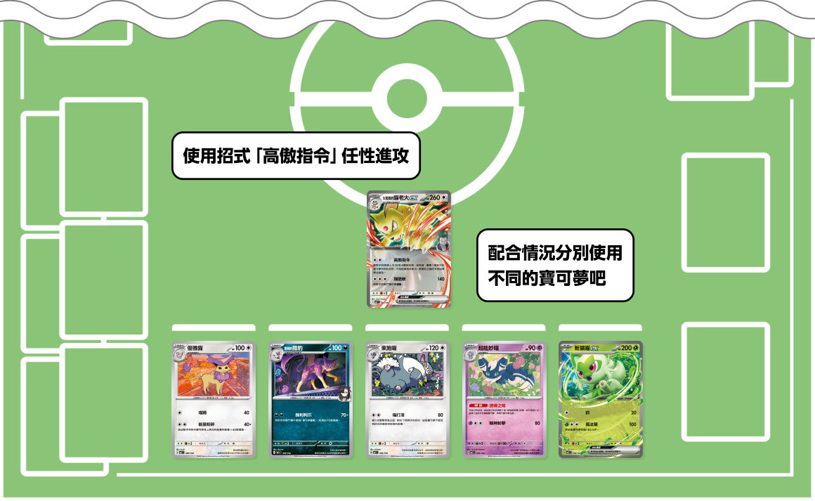 - 大量培育擁有五花八門的招式的寶可夢們取得勝利,是這副牌組的精髓所在!