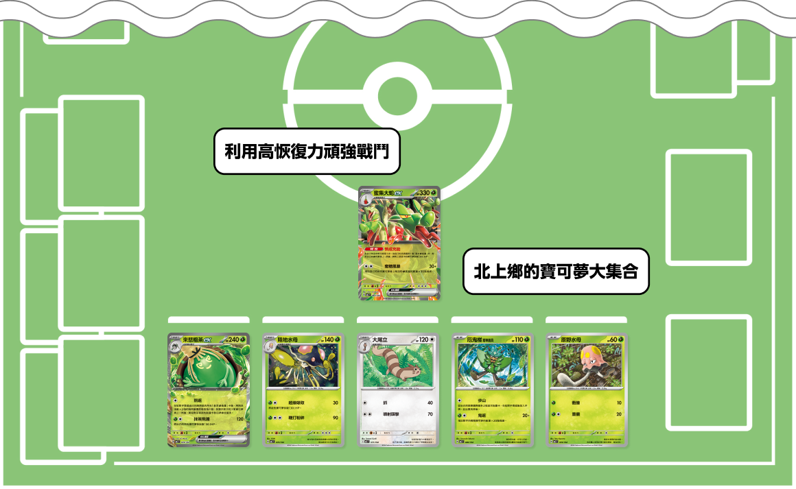 擁有恢復HP的特性或招式的寶可夢,是這副牌組的主力。