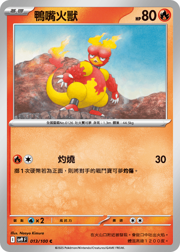 招式「灼燒」不僅可以造成90點傷害,還能擲1次硬幣若為正面,則將對手的戰鬥寶可夢灼傷!