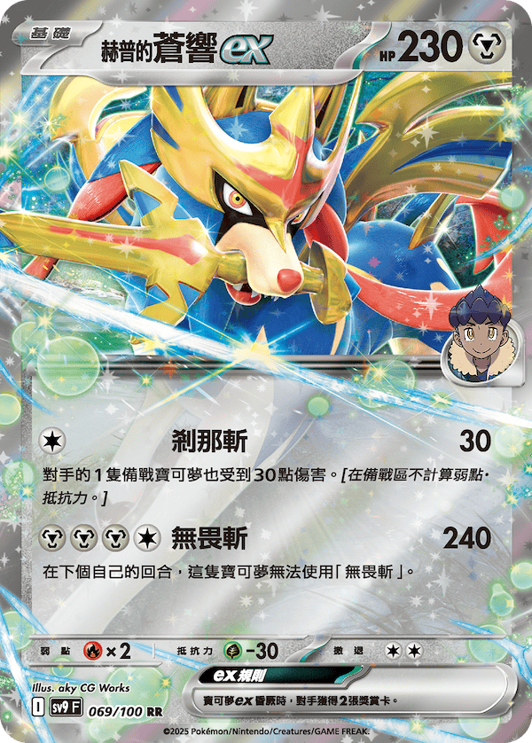 在下一個回合使用「剎那斬」,即使對方的寶可夢撤退,也可以造成30點傷害,因此可以造成合計270點傷害,能夠擊敗大部分的基礎寶可夢的寶可夢ex!