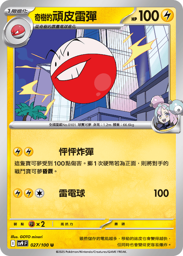 雙方玩家在每個自己的回合時,可使用1次,可從自己的棄牌區選擇最多2張「基本雷能量」卡,在給對手看過後加入手牌。