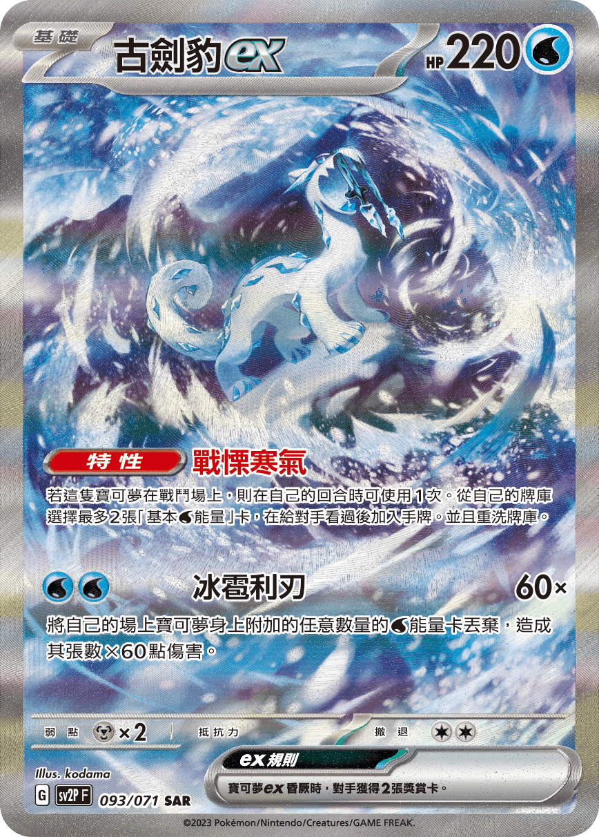 若這隻寶可夢在戰鬥場上,則在自己的回合時可使用1次。從自己的牌庫選擇最多2張「基本【水】能量」卡,在給對手看過後加入手牌。並且重洗牌庫。