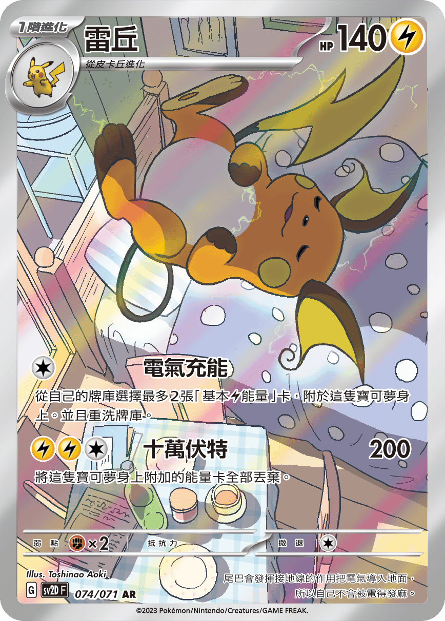 從自己的牌庫選擇最多2張「基本【雷】能量」卡,附於這隻寶可夢身上。並且重洗牌庫。