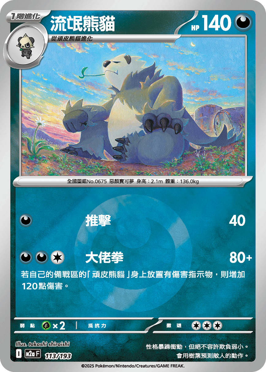 若自己的備戰區的「頑皮熊貓」身上放置有傷害指示物,則增加120點傷害。