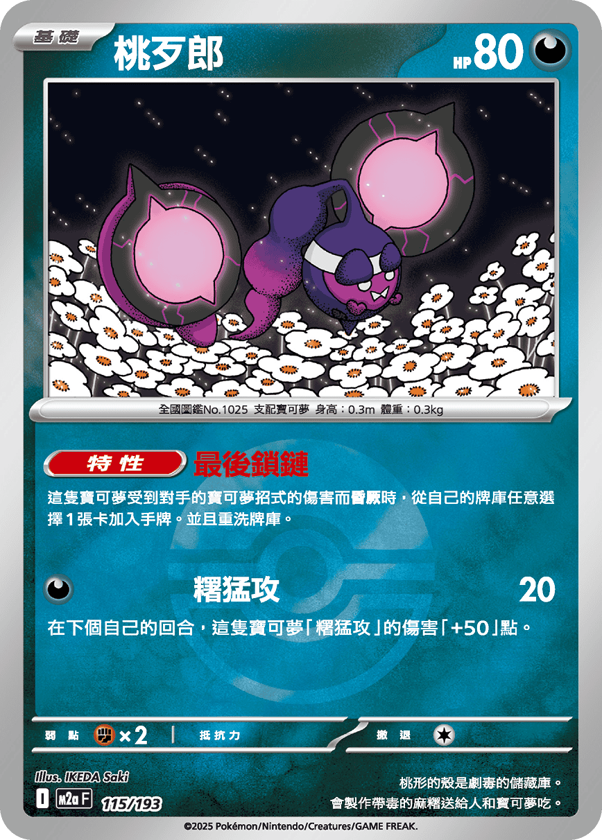 桃形的殼是劇毒的儲藏庫。 會製作帶毒的麻糬 送給人和寶可夢吃。