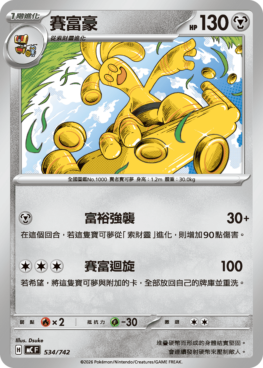 在這個回合,若這隻寶可夢從「索財靈」進化,則增加90點傷害。
