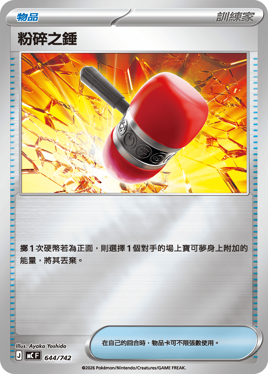 擲1次硬幣若為正面,則選擇1個對手的場上寶可夢身上附加的能量,將其丟棄。