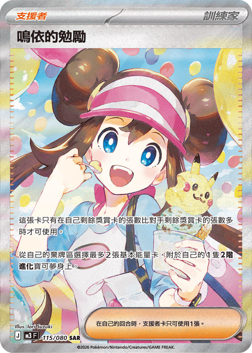 這張卡只有在自己剩餘獎賞卡的張數比對手剩餘獎賞卡的張數多時才可使用。 從自己的棄牌區選擇最多2張基本能量卡,附於自己的1隻【2階進化】寶可夢身上。