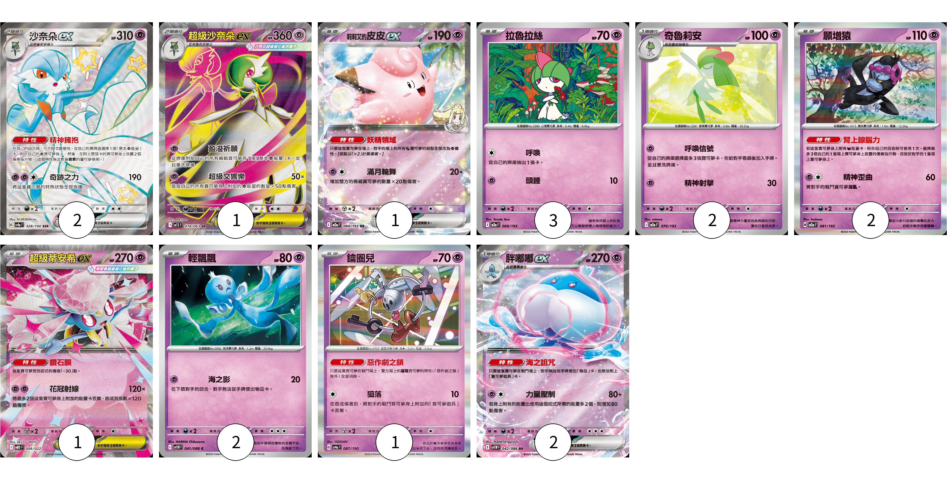 牌組構築方案 以此牌組為基礎新構築牌組 顯示卡面 顯示列表 寶可夢卡(17) 2 1 1 3 2 2 1 2 1 2 寶可夢卡(17) 卡牌名稱 張數 卡牌名稱 張數 沙奈朵ex SV4a 328/190 02 超級沙奈朵ex M1S 078/063 01 莉莉艾的皮皮ex M2a 060/193 01 拉魯拉絲 M2a 069/193 03 奇魯莉安 M2a 070/193 02 願增猿 M2a 081/193 02 超級蒂安希ex MBD 006/022 01 輕飄飄 SV11W 041/086 02 鑰圈兒 SV4a 087/190 01 胖嘟嘟ex SV11W 042/086 02 以此牌組為基礎新構築牌組 牌組編碼 BzGPDZ-YbqHSE-LpIEqY copy 列印牌組單 牌組編碼已複製 分享至SNS
