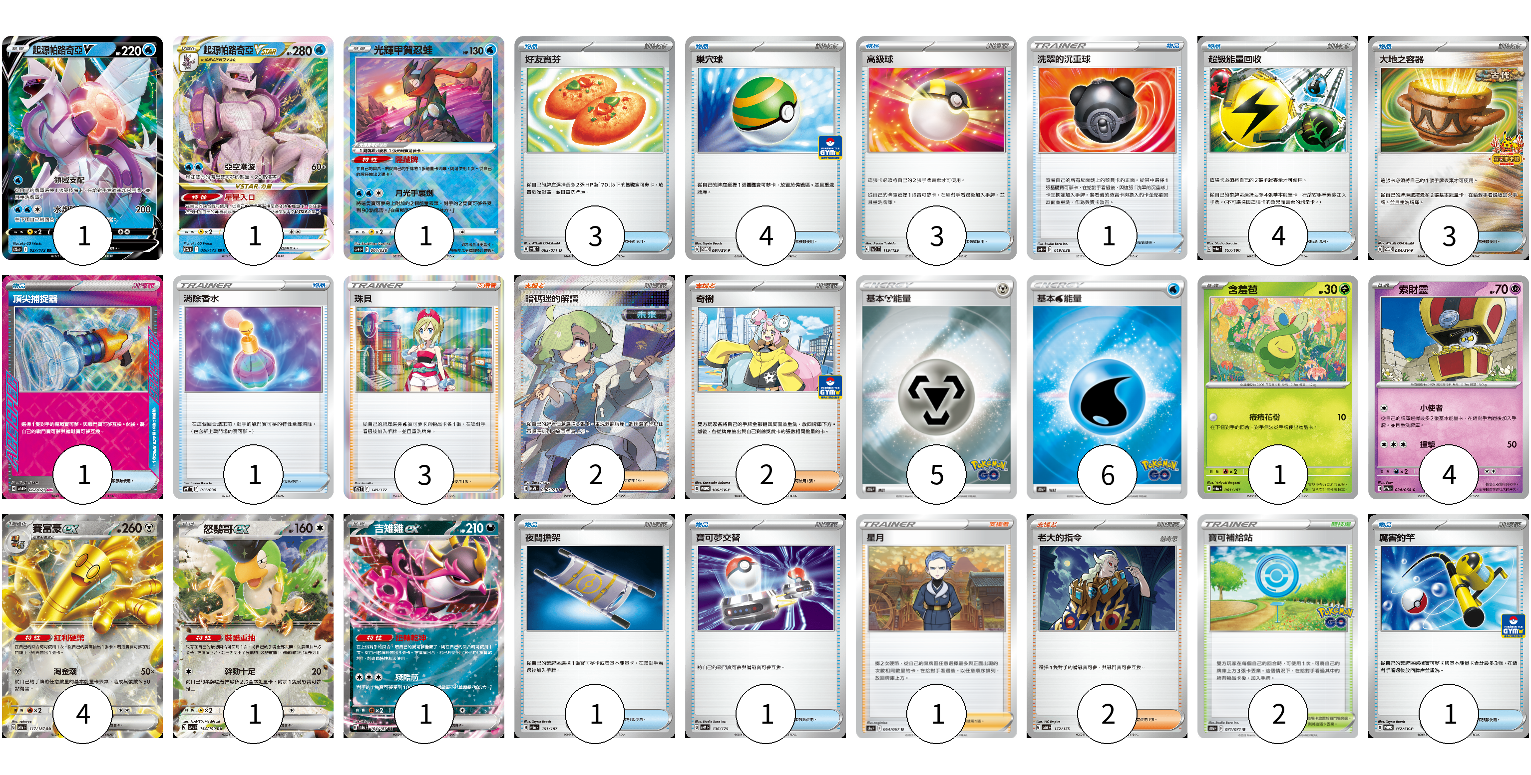 牌組構築方案 以此牌組為基礎新構築牌組 顯示卡面 顯示列表 寶可夢卡(14) 1 1 1 1 4 4 1 1 物品卡(23) 3 4 3 1 4 3 1 1 1 1 1 支援者卡(10) 3 2 2 1 2 競技場卡(2) 2 能量卡(11) 5 6 寶可夢卡(14) 卡牌名稱 張數 卡牌名稱 張數 起源帕路奇亞V S12a 027/172 01 起源帕路奇亞VSTAR S12a 028/172 01 光輝甲賀忍蛙 SVF 004/038 01 含羞苞 SV8a 001/187 01 索財靈 SV7a 024/064 04 賽富豪ex SV8a 117/187 04 怒鸚哥ex SV4a 154/190 01 吉雉雞ex SV8a 104/187 01 物品卡(23) 卡牌名稱 張數 卡牌名稱 張數 好友寶芬 SV5K 063/071 03 巢穴球 SV-P 091/SV-P 04 高級球 SVD 119/139 03 洗翠的沉重球 SVF 019/038 01 超級能量回收 SV4a 157/190 04 大地之容器 SV-P 084/SV-P 03 頂尖捕捉器 SV5M 062/071 01 消除香水 SVF 011/038 01 夜間擔架 SV8a 151/187 01 寶可夢交替 SVM 136/175 01 厲害釣竿 SV-P 112/SV-P 01 支援者卡(10) 卡牌名稱 張數 卡牌名稱 張數 珠貝 S12a 149/172 03 暗碼迷的解讀 SV5M 090/071 02 奇樹 SV-P 106/SV-P 02 星月 S9a 064/067 01 老大的指令 SVM 172/175 02 競技場卡(2) 卡牌名稱 張數 卡牌名稱 張數 寶可補給站 S10b 071/071 02 能量卡(11) 卡牌名稱 張數 卡牌名稱 張數 基本鋼能量 S10b MET 05 基本水能量 S10b WAT 06 以此牌組為基礎新構築牌組 牌組編碼 EHIcIg-XYrHMB-ZtUoNA copy 列印牌組單 牌組編碼已複製 分享至SNS