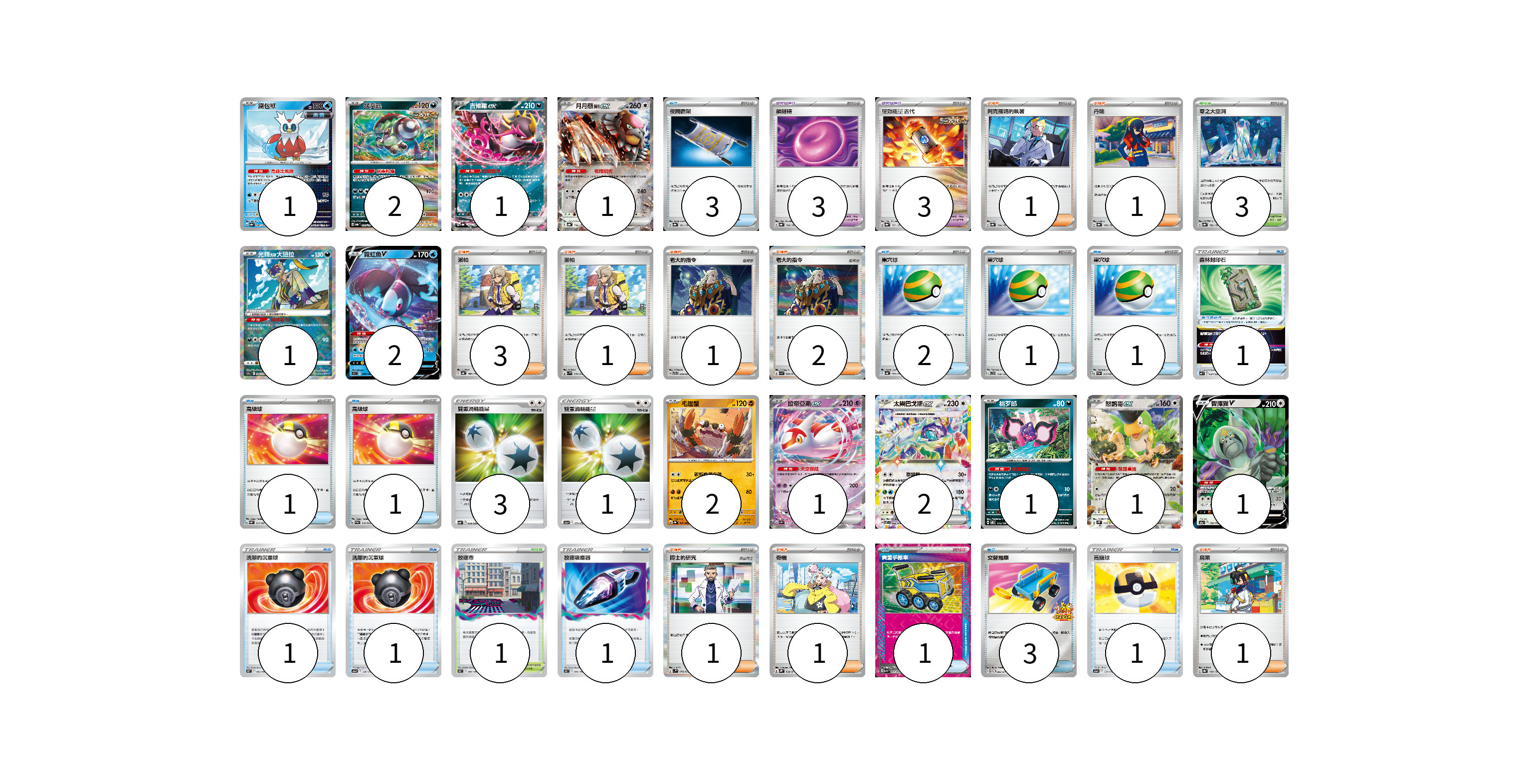 牌組構築方案 以此牌組為基礎新構築牌組 顯示卡面 顯示列表 寶可夢卡(16) 1 2 1 1 1 2 2 1 2 1 1 1 寶可夢道具(6) 3 3 物品卡(18) 3 2 1 1 1 1 1 1 1 1 1 3 1 支援者卡(12) 1 1 3 1 1 2 1 1 1 競技場卡(4) 3 1 能量卡(4) 3 1 寶可夢卡(16) 卡牌名稱 張數 卡牌名稱 張數 鐵包袱 SV8a 047/187 01 猛惡菇 SV8a 099/187 02 吉雉雞ex SV8a 104/187 01 月月熊 赫月ex SV8a 134/187 01 光輝洗翠 大狃拉 S10a 046/071 01 霓虹魚V S9 030/100 02 毛崖蟹 SV3a 031/062 02 拉帝亞斯ex SV7a 019/064 01 太樂巴戈斯ex SV7 088/102 02 桃歹郎 SV8 075/106 01 怒鸚哥ex SV2P 065/071 01 智揮猩V S12a 130/172 01 寶可夢道具(6) 卡牌名稱 張數 卡牌名稱 張數 鎖鏈糬 SV8a 154/187 03 驅勁能量 古代 SV8a 157/187 03 物品卡(18) 卡牌名稱 張數 卡牌名稱 張數 夜間擔架 SV8a 151/187 03 巢穴球 SV4a 159/190 02 巢穴球 SVD 118/139 01 巢穴球 SVAM 015/023 01 森林封印石 SVF 024/038 01 高級球 SVAL 013/021 01 高級球 SVAM 016/023 01 洗翠的沉重球 S10P 062/067 01 洗翠的沉重球 S12a 140/172 01 放逐吸塵器 S11 093/100 01 貴重手推車 SVK 020/042 01 交替推車 SV-P 082/SV-P 03 高級球 S12a 138/172 01 支援者卡(12) 卡牌名稱 張數 卡牌名稱 張數 阿克羅瑪的執著 SV8a 164/187 01 丹瑜 SV8a 170/187 01 派帕 SV4a 180/190 03 派帕 SV1V 076/078 01 老大的指令 SVTR 019/021 01 老大的指令 SV1a 069/073 02 博士的研究(弗圖博士) SV1V 075/078 01 奇樹 SV2D 069/071 01 烏栗 SV8a 169/187 01 競技場卡(4) 卡牌名稱 張數 卡牌名稱 張數 零之大空洞 SV8a 182/187 03 放逐市 S11 099/100 01 能量卡(4) 卡牌名稱 張數 卡牌名稱 張數 雙重渦輪能量 SVB 028/028 03 雙重渦輪能量 S12a 171/172 01 以此牌組為基礎新構築牌組 牌組編碼 EIvong-GOzOpK-AbQfkq copy 列印牌組單 牌組編碼已複製 分享至SNS
