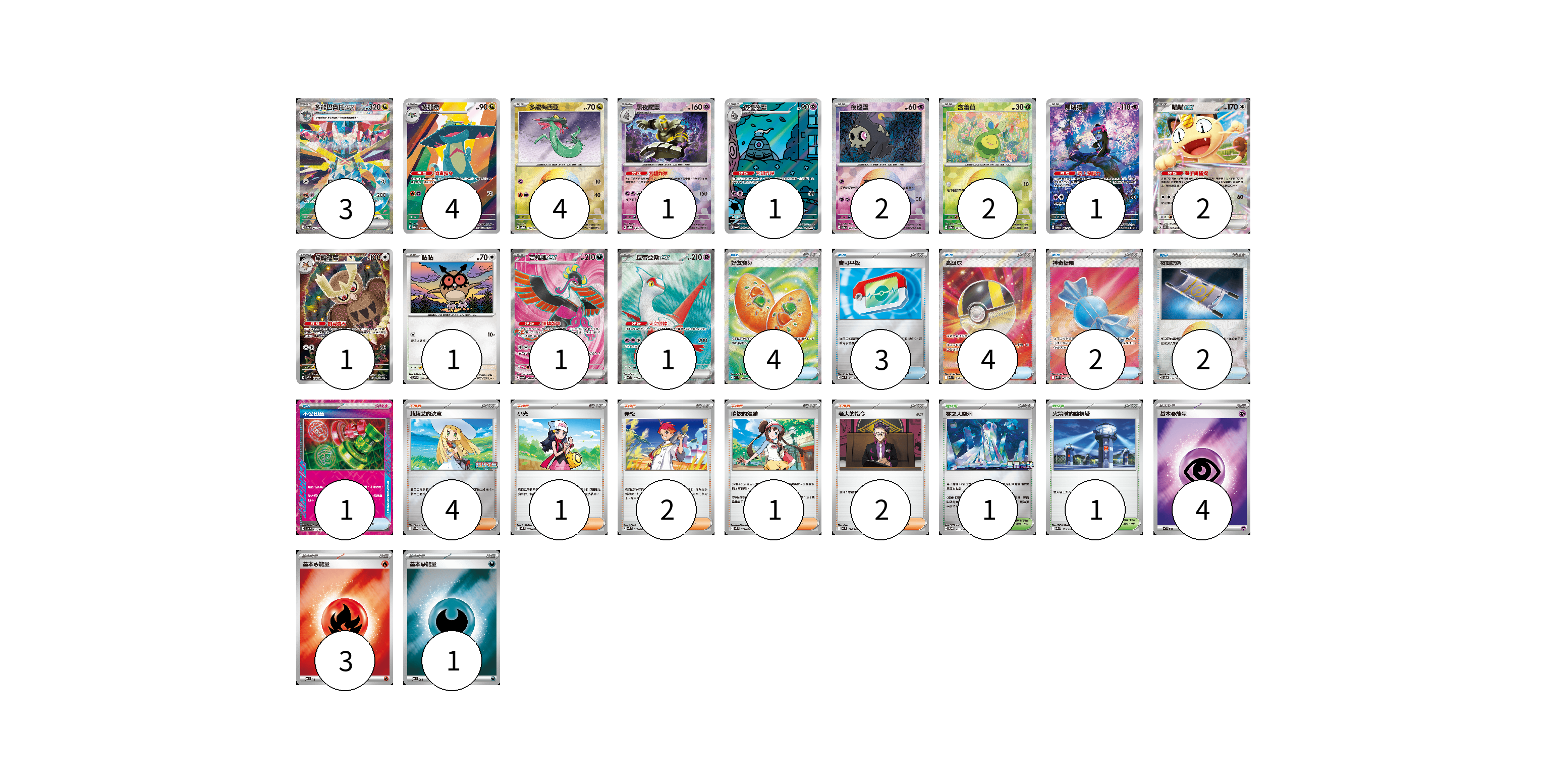 牌組構築方案 以此牌組為基礎新構築牌組 顯示卡面 顯示列表 寶可夢卡(24) 3 4 4 1 1 2 2 1 2 1 1 1 1 物品卡(16) 4 3 4 2 2 1 支援者卡(10) 4 1 2 1 2 競技場卡(2) 1 1 能量卡(8) 4 3 1 寶可夢卡(24) 卡牌名稱 張數 卡牌名稱 張數 多龍巴魯托ex SV8a 221/187 03 多龍奇 M2a 212/193 04 多龍梅西亞 SV8a 118/187 04 黑夜魔靈 SV8a 066/187 01 彷徨夜靈 SV6a 069/064 01 夜巡靈 SV8a 064/187 02 含羞苞 SV8a 001/187 02 願增猿 SV6 107/101 01 喵喵ex M3 061/080 02 貓頭夜鷹 SV7 114/102 01 咕咕 SV7 076/102 01 吉雉雞ex SV6a 081/064 01 拉帝亞斯ex SV7a 078/064 01 物品卡(16) 卡牌名稱 張數 卡牌名稱 張數 好友寶芬 M1S 081/063 04 寶可平板 MC 662/742 03 高級球 M2a 216/193 04 神奇糖果 M1S 082/063 02 夜間擔架 SV8a 151/187 02 不公印章 SV5a 053/066 01 支援者卡(10) 卡牌名稱 張數 卡牌名稱 張數 莉莉艾的決意 M-P 011/M-P 04 小光 M2 077/080 01 赤松 SVK 027/042 02 鳴依的勉勵 M3 075/080 01 老大的指令 MC 724/742 02 競技場卡(2) 卡牌名稱 張數 卡牌名稱 張數 零之大空洞 SV-P 151/SV-P 01 火箭隊的監視塔 M2a 189/193 01 能量卡(8) 卡牌名稱 張數 卡牌名稱 張數 基本【超】能量 MC PSY 04 基本【火】能量 MC FIR 03 基本【惡】能量 MC DAR 01 以此牌組為基礎新構築牌組 牌組編碼 EiQZRR-Mpixfa-MmNCTx copy 列印牌組單 牌組編碼已複製 分享至SNS