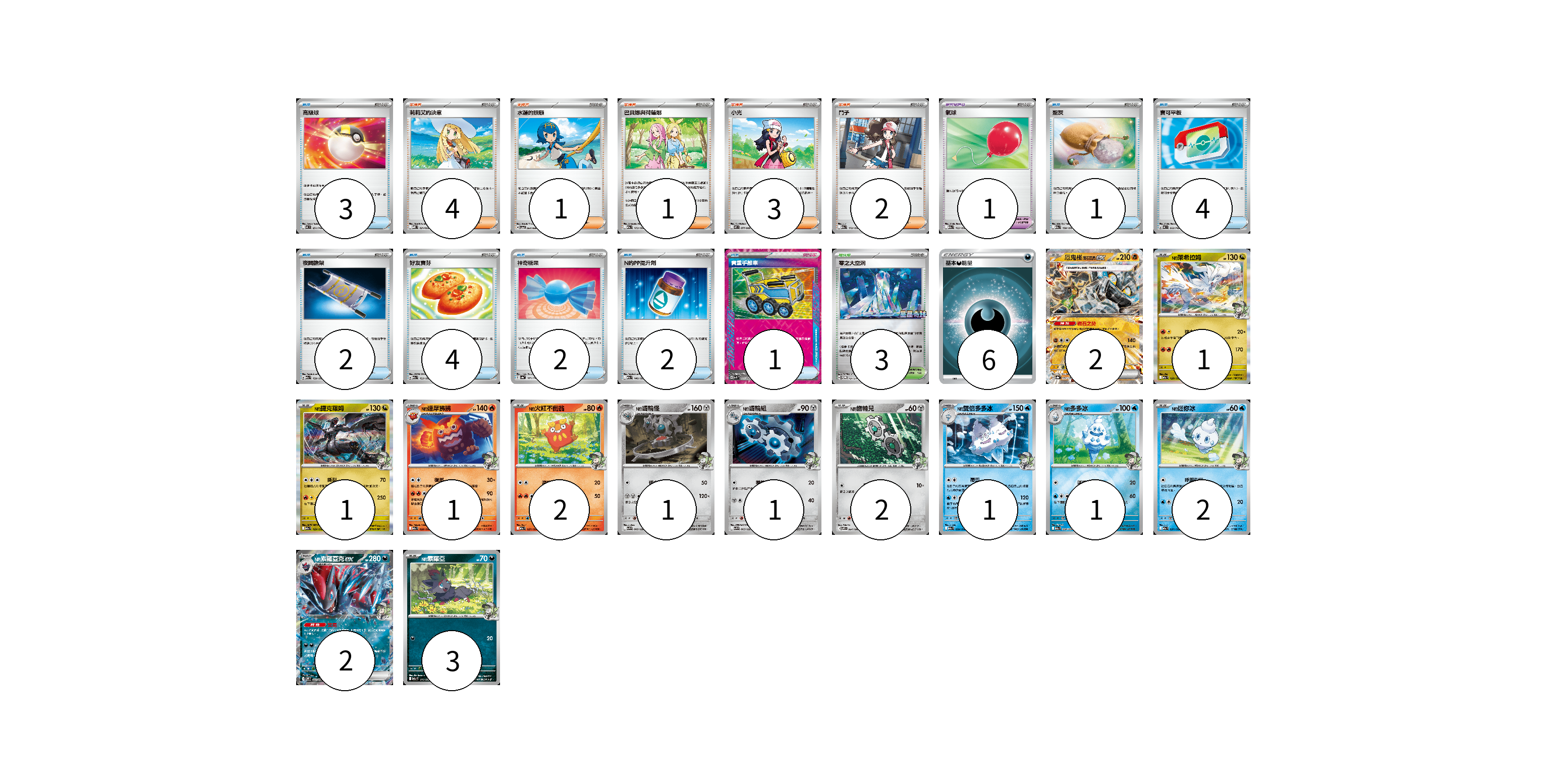 牌組構築方案 以此牌組為基礎新構築牌組 顯示卡面 顯示列表 寶可夢卡(20) 2 1 1 1 2 1 1 2 1 1 2 2 3 寶可夢道具(1) 1 物品卡(19) 3 1 4 2 4 2 2 1 支援者卡(11) 4 1 1 3 2 競技場卡(3) 3 能量卡(6) 6 寶可夢卡(20) 卡牌名稱 張數 卡牌名稱 張數 厄鬼椪 礎石面具ex SV8a 091/187 02 N的萊希拉姆 M2a 128/193 01 N的捷克羅姆 M2a 129/193 01 N的達摩狒狒 M2a 028/193 01 N的火紅不倒翁 M2a 027/193 02 N的齒輪怪 SV9 066/100 01 N的齒輪組 SV9 065/100 01 N的齒輪兒 SV9 064/100 02 N的雙倍多多冰 M2a 039/193 01 N的多多冰 M2a 038/193 01 N的迷你冰 M2a 037/193 02 N的索羅亞克ex SV9 061/100 02 N的索羅亞 M2a 111/193 03 寶可夢道具(1) 卡牌名稱 張數 卡牌名稱 張數 氣球 M2a 165/193 01 物品卡(19) 卡牌名稱 張數 卡牌名稱 張數 高級球 MC 651/742 03 聖灰 M2a 150/193 01 寶可平板 MC 662/742 04 夜間擔架 M2a 159/193 02 好友寶芬 M2a 153/193 04 神奇糖果 SV4a 163/190 02 N的PP提升劑 M2a 146/193 02 貴重手推車 SVK 020/042 01 支援者卡(11) 卡牌名稱 張數 卡牌名稱 張數 莉莉艾的決意 MBD 021/022 04 水蓮的照顧 SV5a 064/066 01 巴貝娜與荷蓮娜 M2a 173/193 01 小光 M2 077/080 03 鬥子 M2a 172/193 02 競技場卡(3) 卡牌名稱 張數 卡牌名稱 張數 零之大空洞 SV-P 151/SV-P 03 能量卡(6) 卡牌名稱 張數 卡牌名稱 張數 基本【惡】能量 SI DAR 06 以此牌組為基礎新構築牌組 牌組編碼 EqypTa-hjqwkB-nDoQIm copy 列印牌組單 牌組編碼已複製 分享至SNS