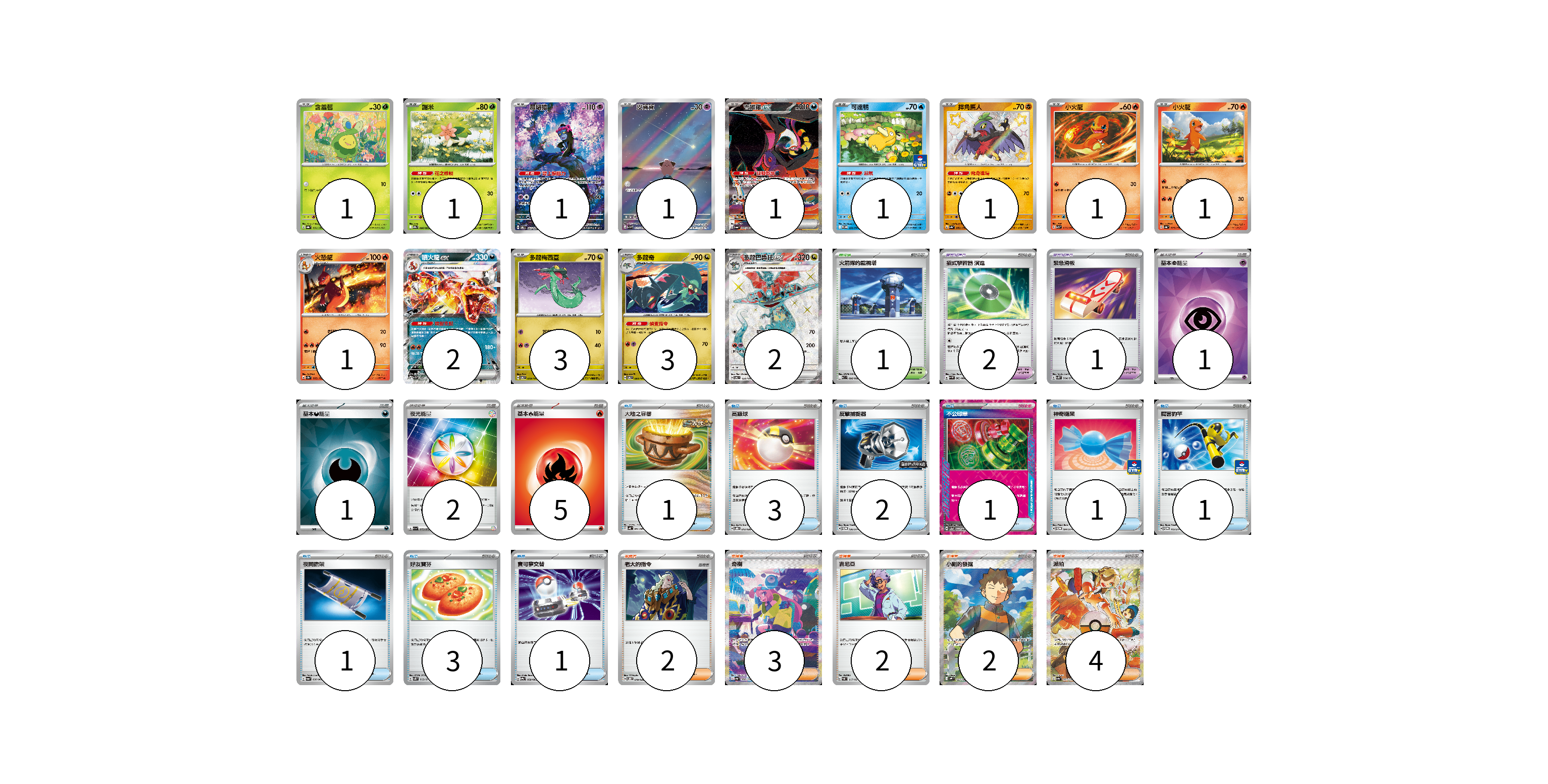牌組構築方案 以此牌組為基礎新構築牌組 顯示卡面 顯示列表 寶可夢卡(20) 1 1 1 1 1 1 1 1 1 1 2 3 3 2 寶可夢道具(3) 2 1 物品卡(14) 1 3 2 1 1 1 1 3 1 支援者卡(13) 2 3 2 2 4 競技場卡(1) 1 能量卡(9) 1 1 2 5 寶可夢卡(20) 卡牌名稱 張數 卡牌名稱 張數 含羞苞 SV8a 001/187 01 謝米 SV9a 006/063 01 願增猿 SV6 107/101 01 皮寶寶 SV3 113/108 01 吉雉雞ex SV6a 089/064 01 可達鴨 SV-P 220/SV-P 01 摔角鷹人 SV4a 282/190 01 小火龍 SV3 012/108 01 小火龍 SV4a 025/190 01 火恐龍 SV2a 005/165 01 噴火龍ex SV3 066/108 02 多龍梅西亞 SV6 079/101 03 多龍奇 SV6 080/101 03 多龍巴魯托ex SV6 120/101 02 寶可夢道具(3) 卡牌名稱 張數 卡牌名稱 張數 招式學習器 演進 SV4M 063/066 02 緊急滑板 SV5K 064/071 01 物品卡(14) 卡牌名稱 張數 卡牌名稱 張數 大地之容器 SV4K 060/066 01 高級球 SVOD 012/020 03 反擊捕捉器 SV-P 136/SV-P 02 不公印章 SV5a 053/066 01 神奇糖果 SV-P 104/SV-P 01 厲害釣竿 SV-P 112/SV-P 01 夜間擔架 SV6a 056/064 01 好友寶芬 SV5K 063/071 03 寶可夢交替 SV9a 058/063 01 支援者卡(13) 卡牌名稱 張數 卡牌名稱 張數 老大的指令 SVOD 019/020 02 奇樹 SV4a 350/190 03 吉尼亞 SVAL 017/021 02 小剛的發掘 SV9 123/100 02 派帕 SV4a 353/190 04 競技場卡(1) 卡牌名稱 張數 卡牌名稱 張數 火箭隊的監視塔 SV10 096/098 01 能量卡(9) 卡牌名稱 張數 卡牌名稱 張數 基本【超】能量 SVOD PSY 01 基本【惡】能量 SVOM DAR 01 夜光能量 SV1a 073/073 02 基本【火】能量 SVB FIR 05 以此牌組為基礎新構築牌組 牌組編碼 FdtdGA-tYEvHt-iNuWNW copy 列印牌組單 牌組編碼已複製 分享至SNS