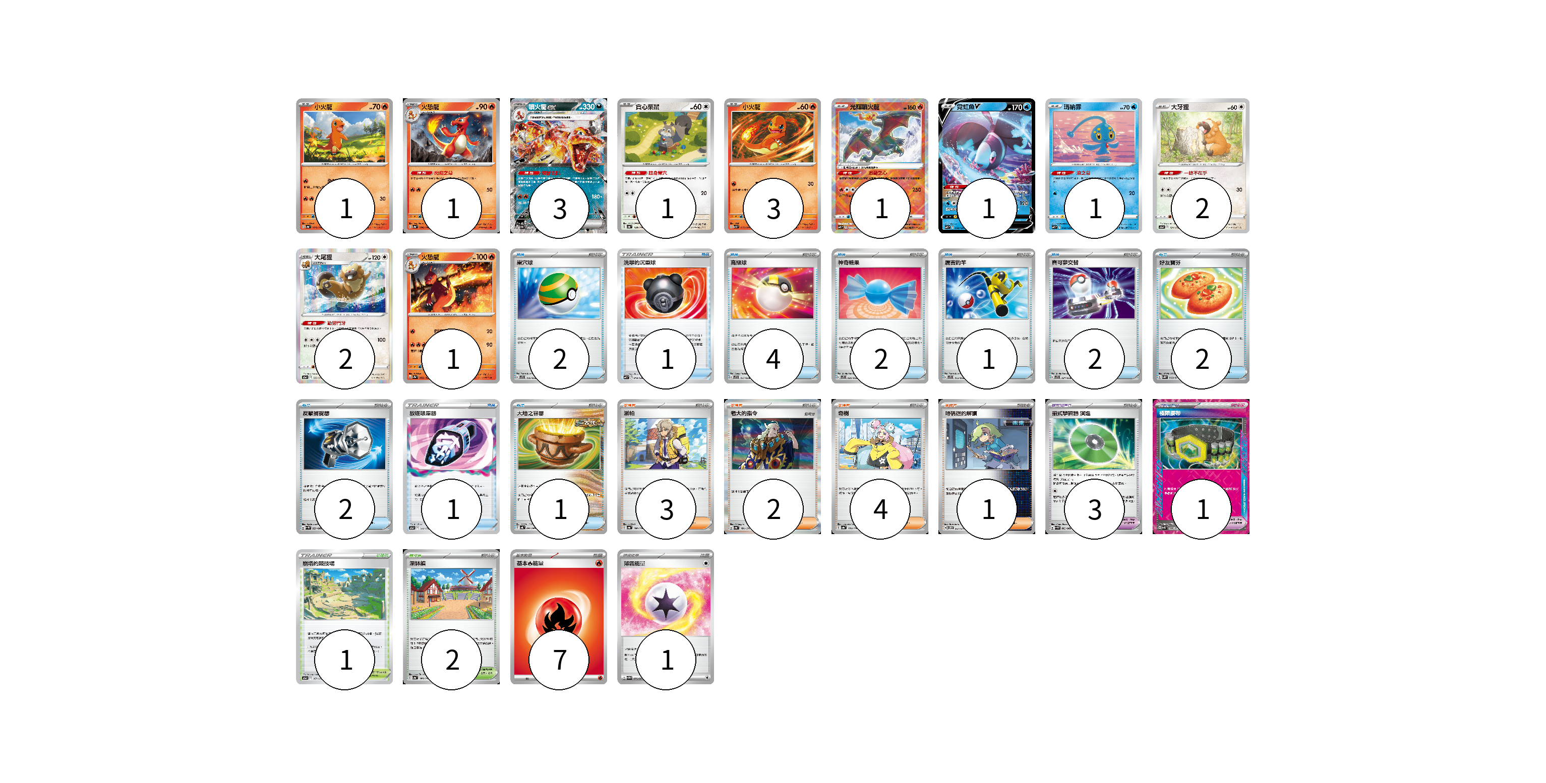 牌組構築方案 以此牌組為基礎新構築牌組 顯示卡面 顯示列表 寶可夢卡(17) 1 1 3 1 3 1 1 1 2 2 1 寶可夢道具(4) 3 1 物品卡(18) 2 1 4 2 1 2 2 2 1 1 支援者卡(10) 3 2 4 1 競技場卡(3) 1 2 能量卡(8) 7 1 寶可夢卡(17) 卡牌名稱 張數 卡牌名稱 張數 小火龍 SV4a 025/190 01 火恐龍 SV4a 026/190 01 噴火龍ex SV4a 115/190 03 貪心栗鼠 SV4a 148/190 01 小火龍 SV3 012/108 03 光輝噴火龍 SVF 001/038 01 霓虹魚V SVF 002/038 01 瑪納霏 SVF 003/038 01 大牙狸 S12a 121/172 02 大尾狸 S12a 122/172 02 火恐龍 SV2a 005/165 01 寶可夢道具(4) 卡牌名稱 張數 卡牌名稱 張數 招式學習器 演進 SV4M 063/066 03 極限腰帶 SV5K 066/071 01 物品卡(18) 卡牌名稱 張數 卡牌名稱 張數 巢穴球 SVF 016/038 02 洗翠的沉重球 SVF 019/038 01 高級球 SVF 017/038 04 神奇糖果 SVF 020/038 02 厲害釣竿 SVF 013/038 01 寶可夢交替 SVF 021/038 02 好友寶芬 SV5K 063/071 02 反擊捕捉器 SV4M 059/066 02 放逐吸塵器 S12a 144/172 01 大地之容器 SV4K 060/066 01 支援者卡(10) 卡牌名稱 張數 卡牌名稱 張數 派帕 SV4a 180/190 03 老大的指令 SV4a 181/190 02 奇樹 SV4a 174/190 04 暗碼迷的解讀 SV5M 067/071 01 競技場卡(3) 卡牌名稱 張數 卡牌名稱 張數 崩塌的競技場 S12a 167/172 01 深缽鎮 SV4a 185/190 02 能量卡(8) 卡牌名稱 張數 卡牌名稱 張數 基本【火】能量 SVD FIR 07 薄霧能量 SV5M 071/071 01 以此牌組為基礎新構築牌組 牌組編碼 HqqIrQ-SrRupc-EKmIkG copy 列印牌組單 牌組編碼已複製 分享至SNS