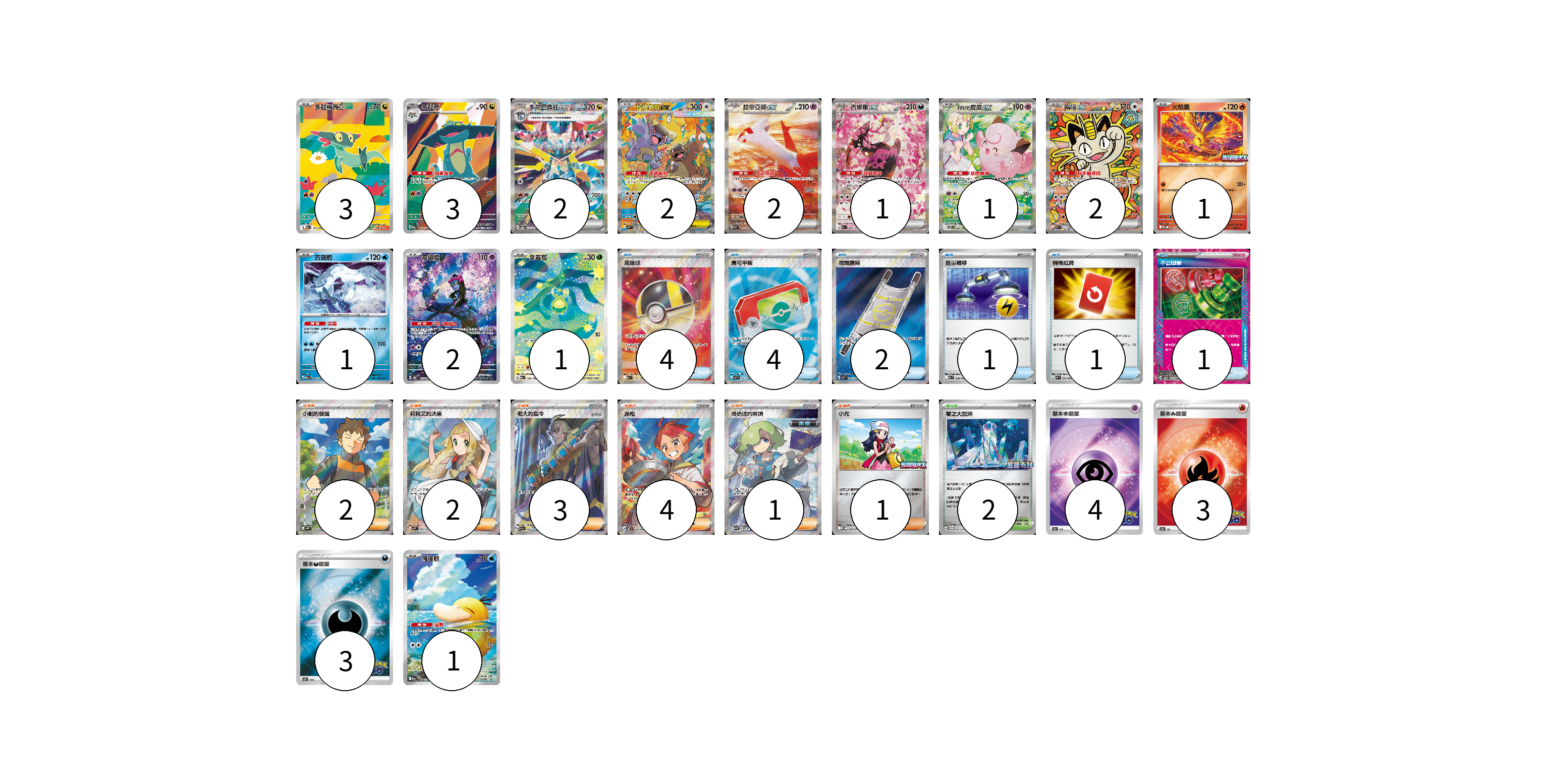 牌組構築方案 以此牌組為基礎新構築牌組 顯示卡面 顯示列表 寶可夢卡(22) 3 3 2 2 2 1 1 2 1 1 2 1 1 物品卡(13) 4 4 2 1 1 1 支援者卡(13) 2 2 3 4 1 1 競技場卡(2) 2 能量卡(10) 4 3 3 寶可夢卡(22) 卡牌名稱 張數 卡牌名稱 張數 多龍梅西亞 M2a 211/193 03 多龍奇 M2a 212/193 03 多龍巴魯托ex SV8a 221/187 02 超級袋獸ex M1S 089/063 02 拉帝亞斯ex SV7a 087/064 02 吉雉雞ex M2a 244/193 01 莉莉艾的皮皮ex SV9 126/100 01 喵喵ex M3 114/080 02 火焰鳥 M-P 022/M-P 01 古劍豹 M2a 043/193 01 願增猿 SV6 107/101 02 含羞苞 M2a 196/193 01 可達鴨 M2a 199/193 01 物品卡(13) 卡牌名稱 張數 卡牌名稱 張數 高級球 M2a 216/193 04 寶可平板 M3 103/080 04 夜間擔架 M1L 083/063 02 能量轉移 MC 638/742 01 特殊紅牌 M4 072/083 01 不公印章 SV5a 053/066 01 支援者卡(13) 卡牌名稱 張數 卡牌名稱 張數 小剛的發掘 SV9 123/100 02 莉莉艾的決意 M1L 086/063 02 老大的指令(魁奇思) SV1a 095/073 03 赤松 SV7 123/102 04 暗碼迷的解讀 SV5M 090/071 01 小光 M-P 028/M-P 01 競技場卡(2) 卡牌名稱 張數 卡牌名稱 張數 零之大空洞 SV-P 151/SV-P 02 能量卡(10) 卡牌名稱 張數 卡牌名稱 張數 基本超能量 S10b PSY 04 基本火能量 S10b FIR 03 基本惡能量 S10b DAR 03 以此牌組為基礎新構築牌組 牌組編碼 IQszDq-gMeZLC-tJWDoj copy 列印牌組單 牌組編碼已複製 分享至SNS