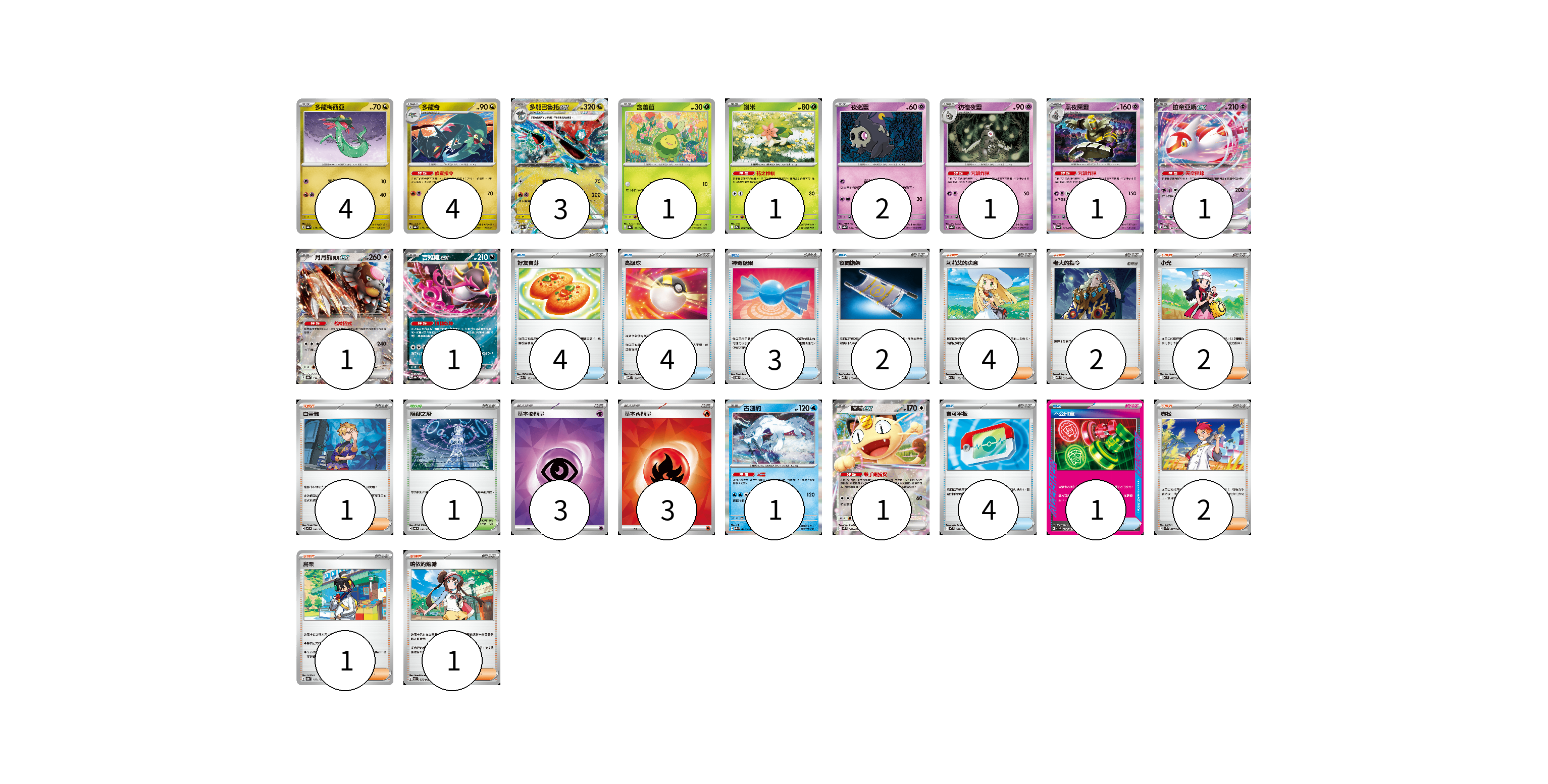 牌組構築方案 以此牌組為基礎新構築牌組 顯示卡面 顯示列表 寶可夢卡(22) 4 4 3 1 1 2 1 1 1 1 1 1 1 物品卡(18) 4 4 3 2 4 1 支援者卡(13) 4 2 2 1 2 1 1 競技場卡(1) 1 能量卡(6) 3 3 寶可夢卡(22) 卡牌名稱 張數 卡牌名稱 張數 多龍梅西亞 SV8a 118/187 04 多龍奇 SV8a 119/187 04 多龍巴魯托ex SV8a 120/187 03 含羞苞 SV8a 001/187 01 謝米 SV9a 006/063 01 夜巡靈 SV8a 064/187 02 彷徨夜靈 SV8a 065/187 01 黑夜魔靈 SV6a 020/064 01 拉帝亞斯ex M2a 075/193 01 月月熊 赫月ex SV8a 134/187 01 吉雉雞ex SV8a 104/187 01 古劍豹 M2a 043/193 01 喵喵ex M3 061/080 01 物品卡(18) 卡牌名稱 張數 卡牌名稱 張數 好友寶芬 M2a 153/193 04 高級球 MBD 014/022 04 神奇糖果 SVOD 013/020 03 夜間擔架 MBD 016/022 02 寶可平板 MC 662/742 04 不公印章 MBD 011/022 01 支援者卡(13) 卡牌名稱 張數 卡牌名稱 張數 莉莉艾的決意 M2a 175/193 04 老大的指令 MBD 020/022 02 小光 M2 077/080 02 白蕾雅 SV7 100/102 01 赤松 SVK 027/042 02 烏栗 SV8a 169/187 01 鳴依的勉勵 M3 075/080 01 競技場卡(1) 卡牌名稱 張數 卡牌名稱 張數 阻礙之塔 SV6 100/101 01 能量卡(6) 卡牌名稱 張數 卡牌名稱 張數 基本【超】能量 SVK PSY 03 基本【火】能量 SVK FIR 03 以此牌組為基礎新構築牌組 牌組編碼 KCqYXB-hBUnJV-dQOrRn copy 列印牌組單 牌組編碼已複製 分享至SNS