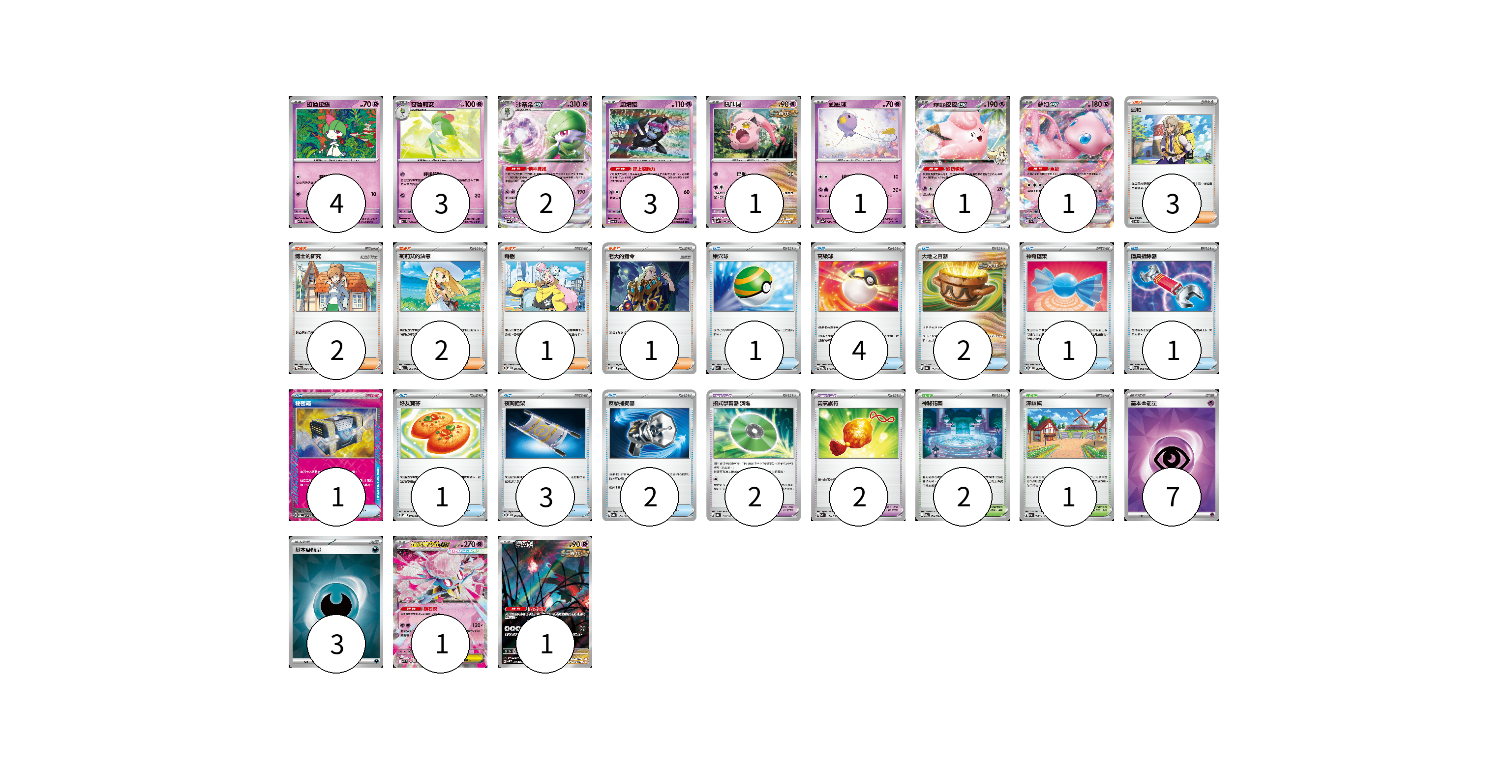 牌組構築方案 以此牌組為基礎新構築牌組 顯示卡面 顯示列表 寶可夢卡(18) 4 3 2 3 1 1 1 1 1 1 寶可夢道具(4) 2 2 物品卡(16) 1 4 2 1 1 1 1 3 2 支援者卡(9) 3 2 2 1 1 競技場卡(3) 2 1 能量卡(10) 7 3 寶可夢卡(18) 卡牌名稱 張數 卡牌名稱 張數 拉魯拉絲 M1S 040/063 04 奇魯莉安 M1S 041/063 03 沙奈朵ex SV4a 082/190 02 願增猿 SV6 055/101 03 吼叫尾 SV4K 032/066 01 飄飄球 SV4a 083/190 01 莉莉艾的皮皮ex SV9 033/100 01 夢幻ex SV2a 151/165 01 超級蒂安希ex MBD 006/022 01 振翼髮 SV5K 076/071 01 寶可夢道具(4) 卡牌名稱 張數 卡牌名稱 張數 招式學習器 演進 SV8a 160/187 02 勇氣護符 SVM 142/175 02 物品卡(16) 卡牌名稱 張數 卡牌名稱 張數 巢穴球 SVM 133/175 01 高級球 SVQL 015/022 04 大地之容器 SV8a 143/187 02 神奇糖果 SVOD 013/020 01 道具拆除器 SV11W 080/086 01 秘密箱 SV6 092/101 01 好友寶芬 SVOD 011/020 01 夜間擔架 SVOM 016/021 03 反擊捕捉器 SV8a 139/187 02 支援者卡(9) 卡牌名稱 張數 卡牌名稱 張數 派帕 SVOD 018/020 03 博士的研究 SV11B 084/086 02 莉莉艾的決意 M1L 062/063 02 奇樹 SVOD 016/020 01 老大的指令 SVOD 019/020 01 競技場卡(3) 卡牌名稱 張數 卡牌名稱 張數 神秘花園 M1S 063/063 02 深缽鎮 SVK 039/042 01 能量卡(10) 卡牌名稱 張數 卡牌名稱 張數 基本【超】能量 SVOD PSY 07 基本【惡】能量 SVOM DAR 03 以此牌組為基礎新構築牌組 牌組編碼 LQvuaV-tEbbdP-QfbsXj copy 列印牌組單 牌組編碼已複製 分享至SNS