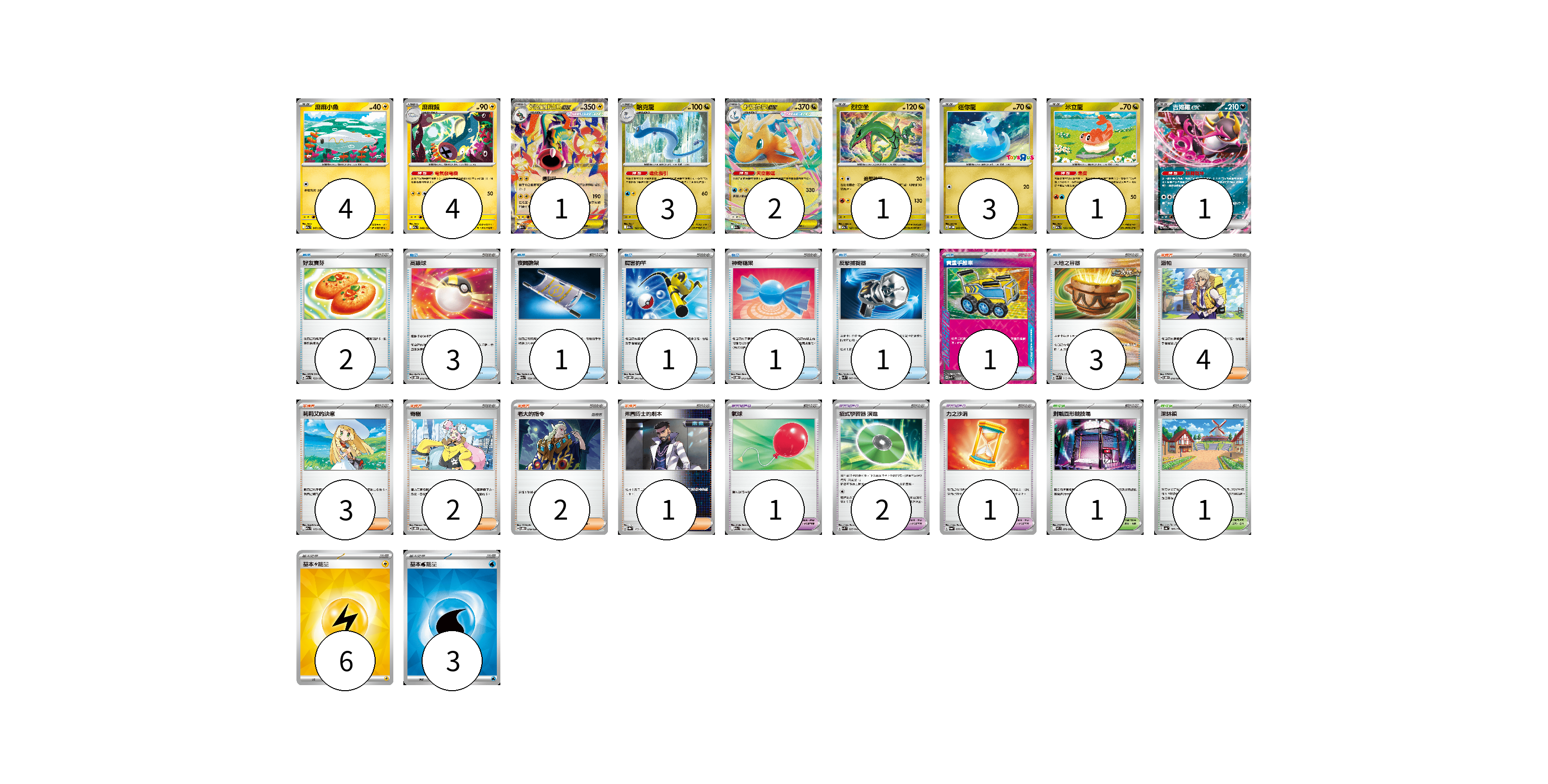牌組構築方案 以此牌組為基礎新構築牌組 顯示卡面 顯示列表 寶可夢卡(20) 4 4 1 3 2 1 3 1 1 寶可夢道具(4) 1 2 1 物品卡(13) 2 3 1 1 1 1 1 3 支援者卡(12) 4 3 2 2 1 競技場卡(2) 1 1 能量卡(9) 6 3 寶可夢卡(20) 卡牌名稱 張數 卡牌名稱 張數 麻麻小魚 M2a 047/193 04 麻麻鰻 M2a 048/193 04 超級麻麻鰻魚王ex M2a 049/193 01 哈克龍 M2a 125/193 03 超級快龍ex M2a 126/193 02 烈空坐 M2a 127/193 01 迷你龍 SV-P 245/SV-P 03 米立龍 M2a 135/193 01 吉雉雞ex M2a 114/193 01 寶可夢道具(4) 卡牌名稱 張數 卡牌名稱 張數 氣球 M2a 165/193 01 招式學習器 演進 SVK 025/042 02 力之沙漏 SV6a 058/064 01 物品卡(13) 卡牌名稱 張數 卡牌名稱 張數 好友寶芬 M2a 153/193 02 高級球 SVOD 012/020 03 夜間擔架 M2a 159/193 01 厲害釣竿 SVOM 011/021 01 神奇糖果 SVOD 013/020 01 反擊捕捉器 SVK 009/042 01 貴重手推車 SVK 020/042 01 大地之容器 SVK 012/042 03 支援者卡(12) 卡牌名稱 張數 卡牌名稱 張數 派帕 SVOD 018/020 04 莉莉艾的決意 M2a 175/193 03 奇樹 SVOD 016/020 02 老大的指令 SVOD 019/020 02 弗圖博士的劇本 SV8a 175/187 01 競技場卡(2) 卡牌名稱 張數 卡牌名稱 張數 對戰圓形競技場 M2 079/080 01 深缽鎮 SV4a 185/190 01 能量卡(9) 卡牌名稱 張數 卡牌名稱 張數 基本【雷】能量 SVQP LIG 06 基本【水】能量 SVK WAT 03 以此牌組為基礎新構築牌組 牌組編碼 ObtkKK-RPswXv-UnHkwk copy 列印牌組單 牌組編碼已複製 分享至SNS