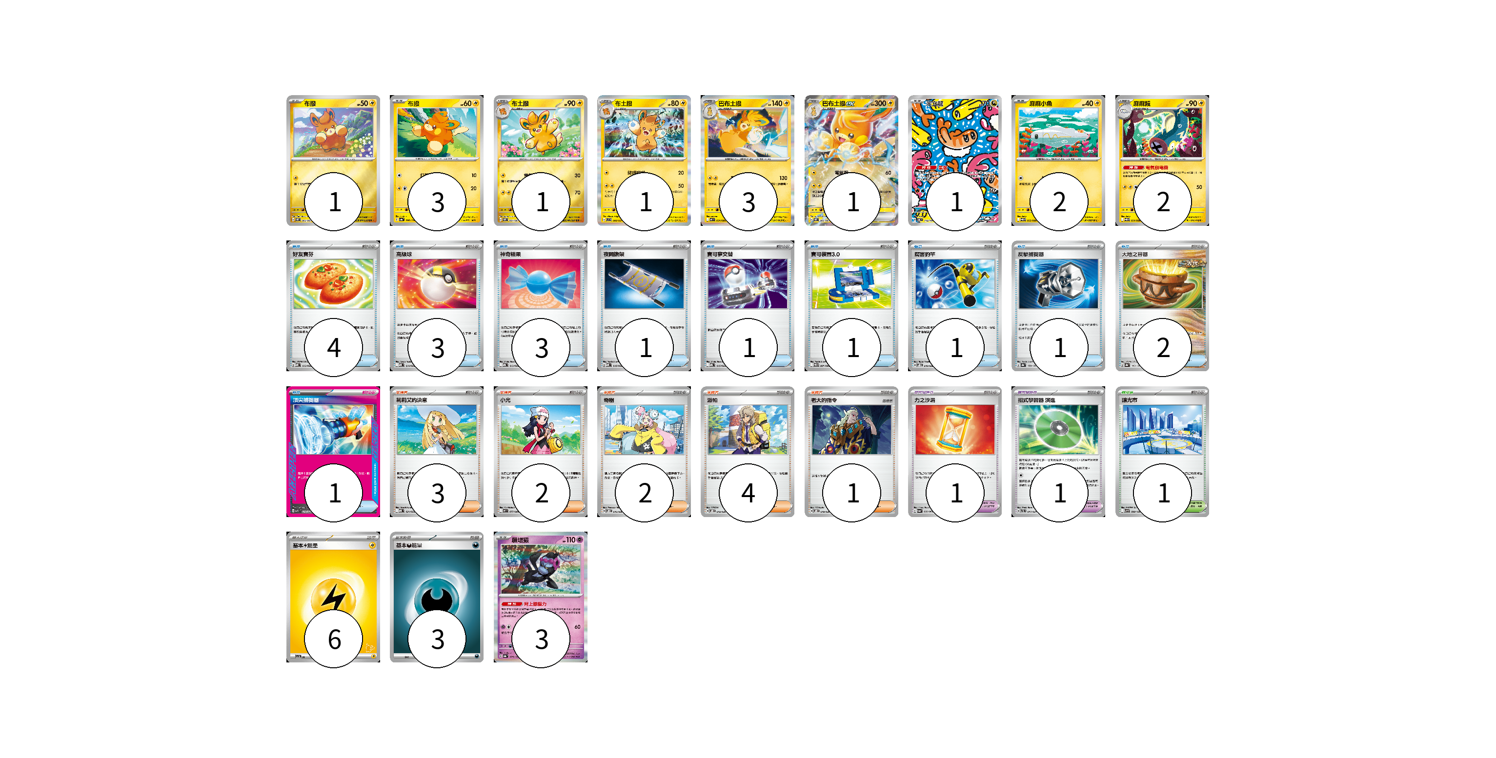 牌組構築方案 以此牌組為基礎新構築牌組 顯示卡面 顯示列表 寶可夢卡(18) 1 3 1 1 3 1 1 2 2 3 寶可夢道具(2) 1 1 物品卡(18) 4 3 3 1 1 1 1 1 2 1 支援者卡(12) 3 2 2 4 1 競技場卡(1) 1 能量卡(9) 6 3 寶可夢卡(18) 卡牌名稱 張數 卡牌名稱 張數 布撥 SVP1 003/007 01 布撥 SV4a 066/190 03 布土撥 SVP1 004/007 01 布土撥 SVC 008/021 01 巴布土撥 M2 034/080 03 巴布土撥ex SVP1 005/007 01 米立龍 SV6 112/101 01 麻麻小魚 SV11B 033/086 02 麻麻鰻 SV11B 034/086 02 願增猿 SV8a 075/187 03 寶可夢道具(2) 卡牌名稱 張數 卡牌名稱 張數 力之沙漏 SV6a 058/064 01 招式學習器 演進 SVTL 017/021 01 物品卡(18) 卡牌名稱 張數 卡牌名稱 張數 好友寶芬 MBD 013/022 04 高級球 MBD 014/022 03 神奇糖果 MBG 013/022 03 夜間擔架 MBD 016/022 01 寶可夢交替 MBG 015/022 01 寶可裝置3.0 SV11B 081/086 01 厲害釣竿 SVOD 010/020 01 反擊捕捉器 SV8a 139/187 01 大地之容器 SV8a 143/187 02 頂尖捕捉器 MBG 014/022 01 支援者卡(12) 卡牌名稱 張數 卡牌名稱 張數 莉莉艾的決意 MBD 021/022 03 小光 M2 077/080 02 奇樹 SVOD 016/020 02 派帕 SVOD 018/020 04 老大的指令 SVOD 019/020 01 競技場卡(1) 卡牌名稱 張數 卡牌名稱 張數 釀光市 SV9 098/100 01 能量卡(9) 卡牌名稱 張數 卡牌名稱 張數 基本【雷】能量 SVI LIG 06 基本【惡】能量 SVF DAR 03 以此牌組為基礎新構築牌組 牌組編碼 OgMFAo-DZBuyJ-LfSfdx copy 列印牌組單 牌組編碼已複製 分享至SNS