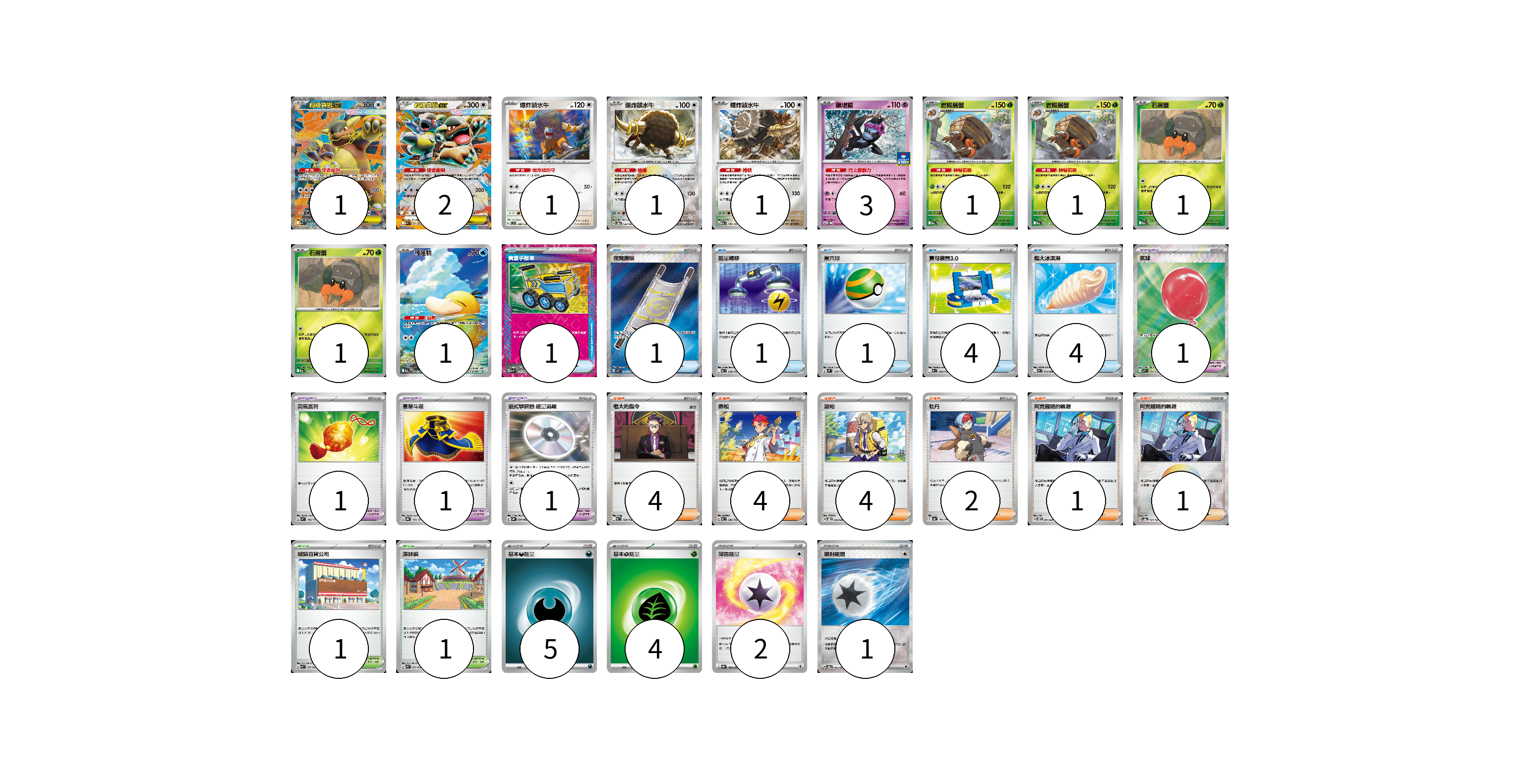 卡牌名稱 張數