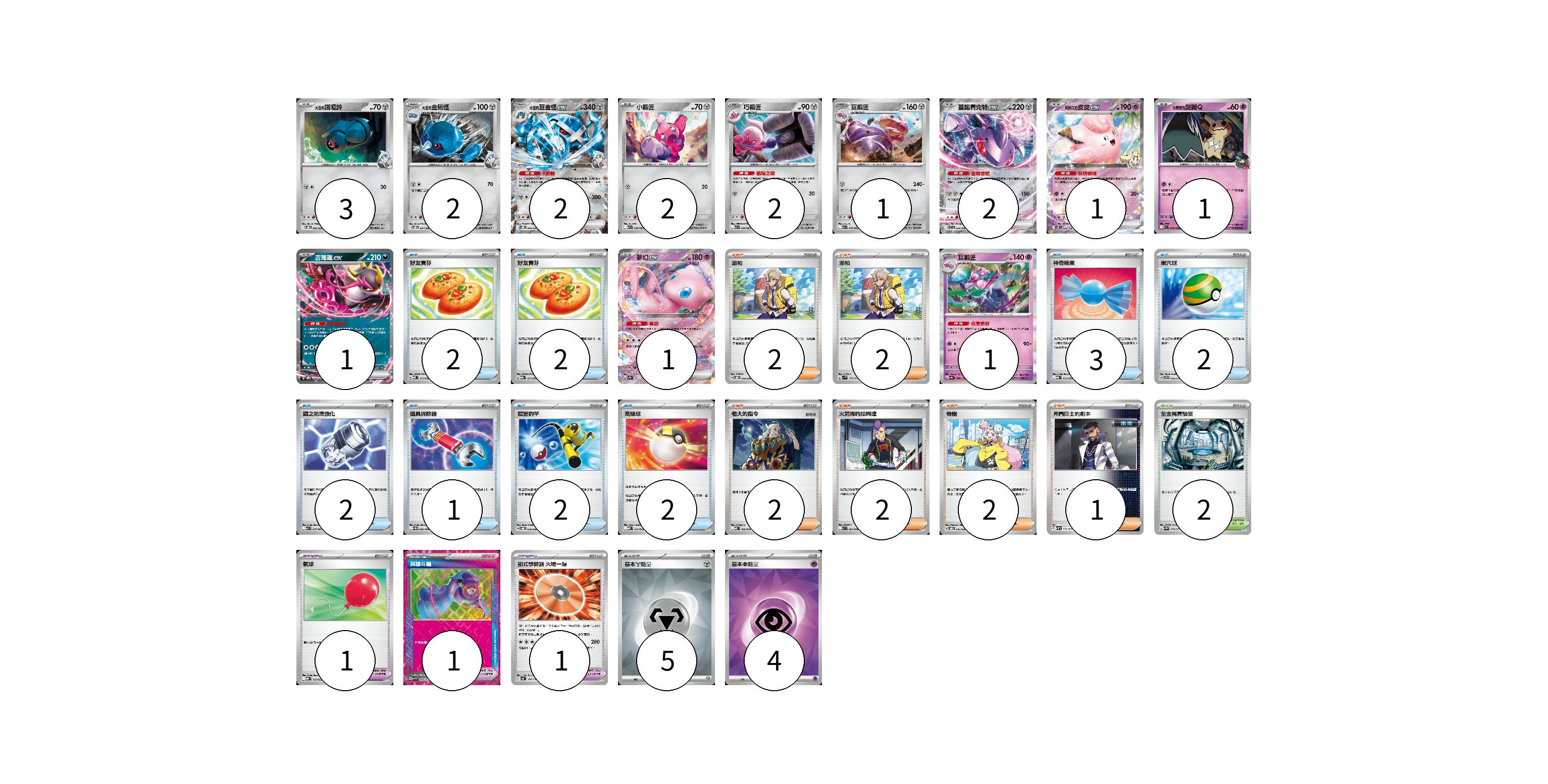牌組構築方案 以此牌組為基礎新構築牌組 顯示卡面 顯示列表 寶可夢卡(19) 3 2 2 2 2 1 2 1 1 1 1 1 寶可夢道具(3) 1 1 1 物品卡(16) 2 2 3 2 2 1 2 2 支援者卡(11) 2 2 2 2 2 1 競技場卡(2) 2 能量卡(9) 5 4 寶可夢卡(19) 卡牌名稱 張數 卡牌名稱 張數 <大吾的>鐵啞鈴 SVOD 006/020 03 <大吾的>金屬怪 SVOD 007/020 02 <大吾的>巨金怪ex SVOD 008/020 02 小鍛匠 M1L 048/063 02 巧鍛匠 M1L 049/063 02 巨鍛匠 M1L 050/063 01 蓋諾賽克特ex SV11B 069/086 02 莉莉艾的皮皮ex SV9 033/100 01 <火箭隊的>謎擬Q SV10 042/098 01 吉雉雞ex SVOM 009/021 01 夢幻ex SV2a 151/165 01 巨鍛匠 SV4a 096/190 01 寶可夢道具(3) 卡牌名稱 張數 卡牌名稱 張數 氣球 MBG 019/022 01 英雄斗篷 SV5M 064/071 01 招式學習器 火場一爆 SV4a 170/190 01 物品卡(16) 卡牌名稱 張數 卡牌名稱 張數 好友寶芬 MBD 013/022 02 好友寶芬 MBG 011/022 02 神奇糖果 MBG 013/022 03 巢穴球 SVTG 012/019 02 鐵之防禦強化 M1L 057/063 02 道具拆除器 SV11W 080/086 01 厲害釣竿 SVOD 010/020 02 高級球 MBD 014/022 02 支援者卡(11) 卡牌名稱 張數 卡牌名稱 張數 派帕 SVOD 018/020 02 派帕 SV1V 076/078 02 老大的指令 MBD 020/022 02 火箭隊的拉姆達 SV10 094/098 02 奇樹 SVOD 016/020 02 弗圖博士的劇本 SVHM 021/022 01 競技場卡(2) 卡牌名稱 張數 卡牌名稱 張數 全金屬實驗室 SV5M 070/071 02 能量卡(9) 卡牌名稱 張數 卡牌名稱 張數 基本【鋼】能量 SVOD MET 05 基本【超】能量 SVOD PSY 04 以此牌組為基礎新構築牌組 牌組編碼 PcGoBI-yANEDi-Wfbdgr copy 列印牌組單 牌組編碼已複製 分享至SNS