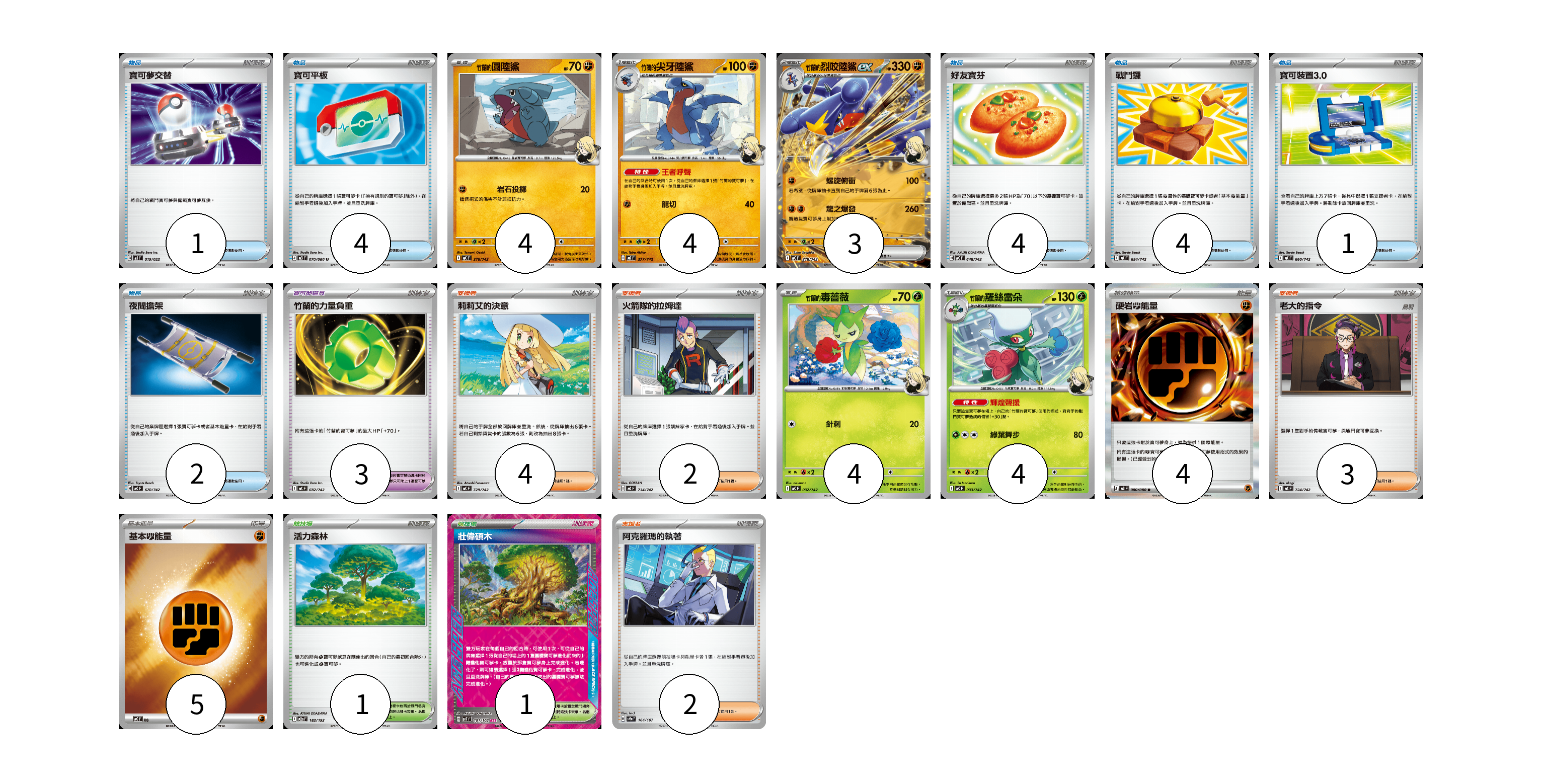 卡牌名稱 張數