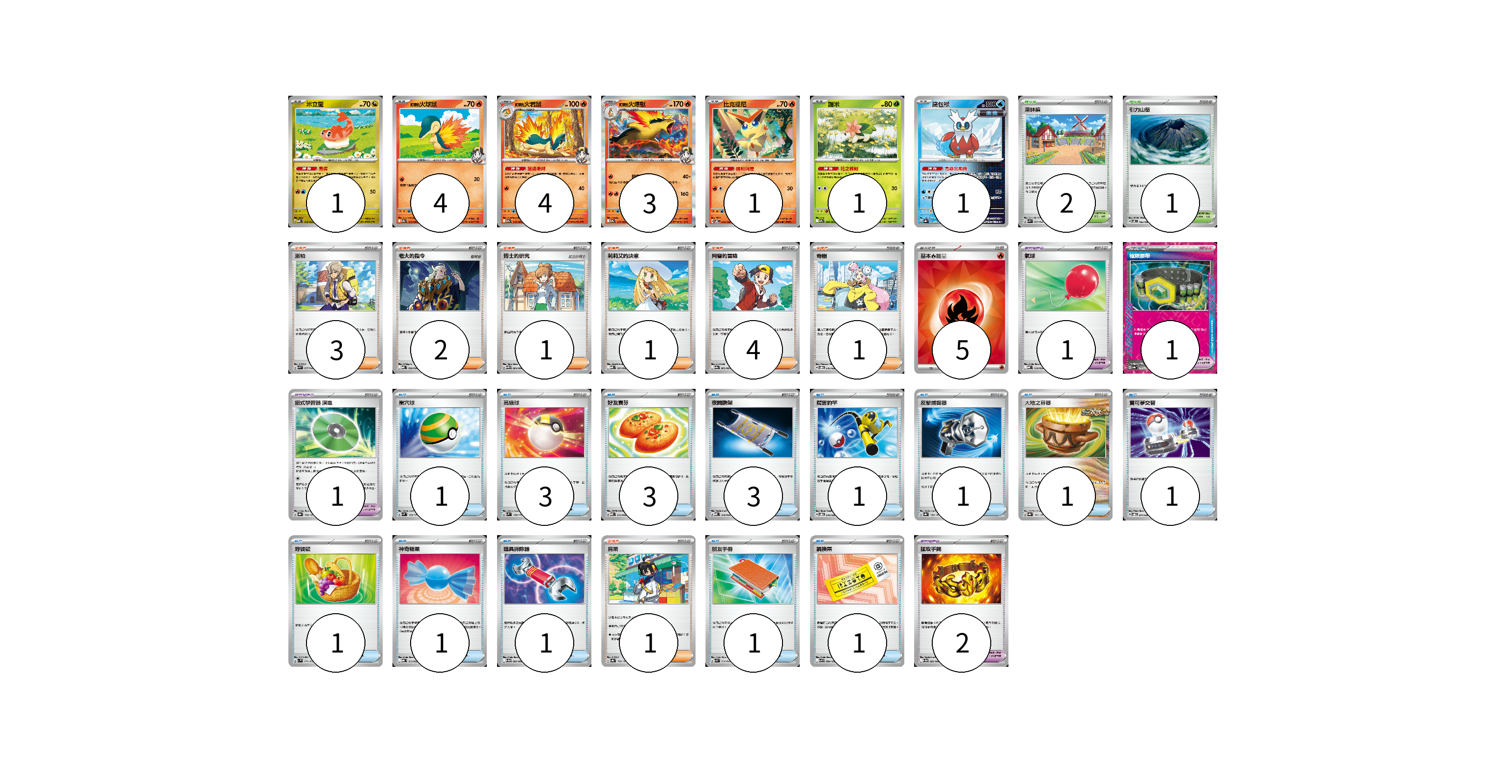 牌組構築方案 以此牌組為基礎新構築牌組 顯示卡面 顯示列表 寶可夢卡(15) 1 4 4 3 1 1 1 寶可夢道具(4) 1 1 2 物品卡(20) 1 1 3 3 3 1 1 1 1 1 1 1 1 1 支援者卡(13) 3 2 1 1 4 1 1 競技場卡(3) 2 1 能量卡(5) 5 寶可夢卡(15) 卡牌名稱 張數 卡牌名稱 張數 米立龍 MBD 010/022 01 <阿響的>火球鼠 SV9a 015/063 04 <阿響的>火岩鼠 SV9a 016/063 04 <阿響的>火爆獸 SV9a 017/063 03 比克提尼 SV8 012/106 01 謝米 SV9a 006/063 01 鐵包袱 SV8a 047/187 01 寶可夢道具(4) 卡牌名稱 張數 卡牌名稱 張數 極限腰帶 SV8a 159/187 01 招式學習器 演進 SV8a 160/187 01 猛攻手鐲 SV11W 082/086 02 物品卡(20) 卡牌名稱 張數 卡牌名稱 張數 氣球 MBD 018/022 01 巢穴球 SVM 133/175 01 高級球 SVM 134/175 03 好友寶芬 MBD 013/022 03 夜間擔架 MBD 016/022 03 厲害釣竿 SVOD 010/020 01 反擊捕捉器 SV8a 139/187 01 大地之容器 SV8a 143/187 01 寶可夢交替 SVOD 014/020 01 野餐籃 SV1V 071/078 01 神奇糖果 MBG 013/022 01 道具拆除器 SV11W 080/086 01 朋友手冊 SVK 014/042 01 調換票 SV9 090/100 01 支援者卡(13) 卡牌名稱 張數 卡牌名稱 張數 派帕 SVK 035/042 03 老大的指令 MBD 020/022 02 博士的研究 SV11B 084/086 01 莉莉艾的決意 MBD 021/022 01 阿響的冒險 SV9a 063/063 04 奇樹 SVOD 016/020 01 烏栗 SV8a 169/187 01 競技場卡(3) 卡牌名稱 張數 卡牌名稱 張數 深缽鎮 SVK 039/042 02 引力山岳 SV8 106/106 01 能量卡(5) 卡牌名稱 張數 卡牌名稱 張數 基本【火】能量 SVQL FIR 05 以此牌組為基礎新構築牌組 牌組編碼 QLkssO-QOXxqW-DxaDkV copy 列印牌組單 牌組編碼已複製 分享至SNS