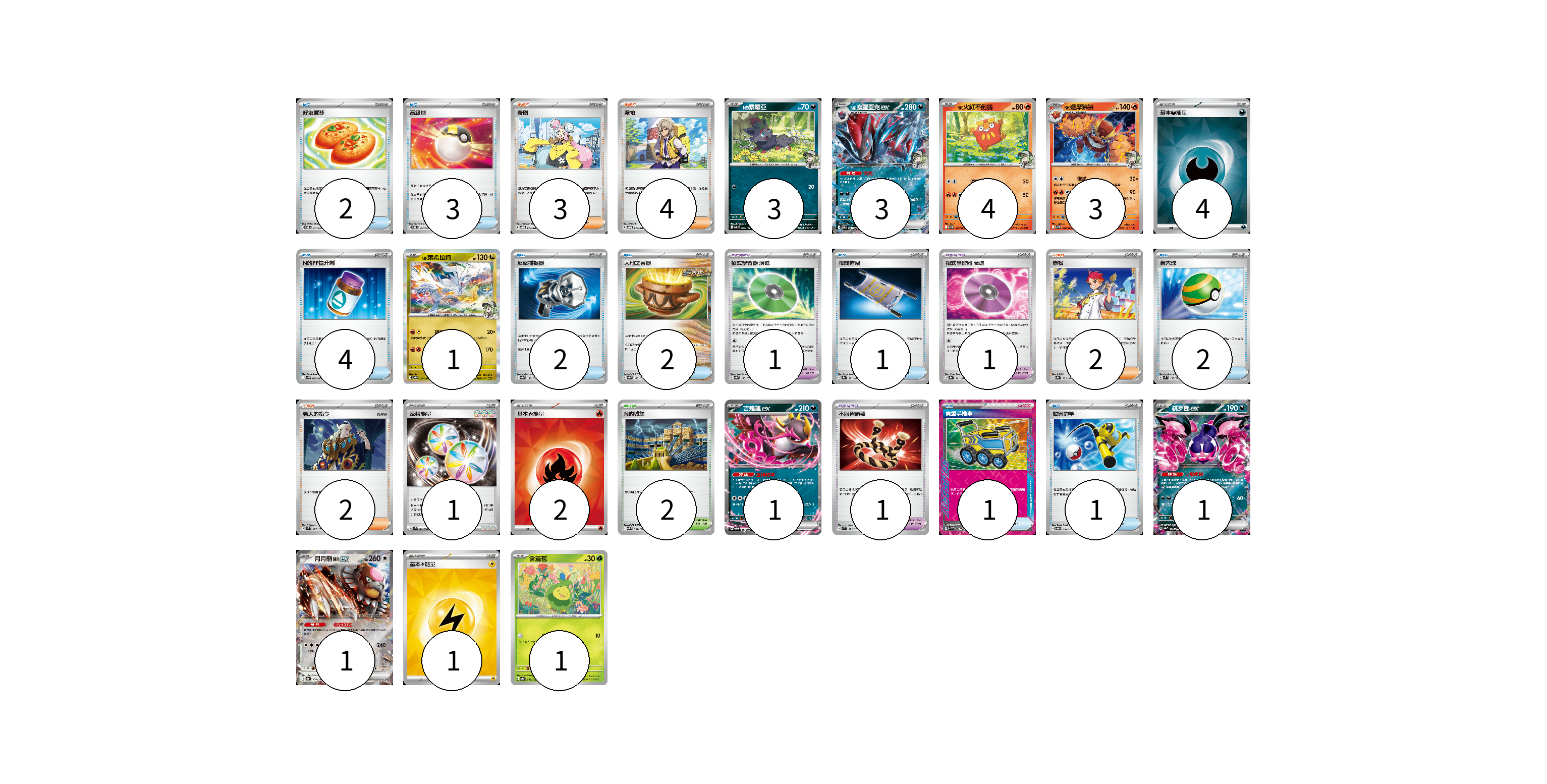 牌組構築方案 以此牌組為基礎新構築牌組 顯示卡面 顯示列表 寶可夢卡(18) 3 3 4 3 1 1 1 1 1 寶可夢道具(3) 1 1 1 物品卡(18) 2 3 4 2 2 1 2 1 1 支援者卡(11) 3 4 2 2 競技場卡(2) 2 能量卡(8) 4 1 2 1 寶可夢卡(18) 卡牌名稱 張數 卡牌名稱 張數 N的索羅亞 SV9 060/100 03 N的索羅亞克ex SV9 061/100 03 N的火紅不倒翁 SV9 015/100 04 N的達摩狒狒 SV9 016/100 03 N的萊希拉姆 SV9 074/100 01 吉雉雞ex SVOD 004/020 01 桃歹郎ex SV8a 105/187 01 月月熊 赫月ex SV8a 134/187 01 含羞苞 SV8a 001/187 01 寶可夢道具(3) 卡牌名稱 張數 卡牌名稱 張數 招式學習器 演進 SV8a 160/187 01 招式學習器 衰退 SV8a 161/187 01 不服輸頭帶 SV1S 073/078 01 物品卡(18) 卡牌名稱 張數 卡牌名稱 張數 好友寶芬 SVOD 011/020 02 高級球 SVOD 012/020 03 N的PP提升劑 SV9 089/100 04 反擊捕捉器 SV8a 139/187 02 大地之容器 SV8a 143/187 02 夜間擔架 SV8a 151/187 01 巢穴球 SVM 133/175 02 貴重手推車 SVK 020/042 01 厲害釣竿 SVOD 010/020 01 支援者卡(11) 卡牌名稱 張數 卡牌名稱 張數 奇樹 SVOD 016/020 03 派帕 SVOD 018/020 04 赤松 SV8a 163/187 02 老大的指令 SVM 172/175 02 競技場卡(2) 卡牌名稱 張數 卡牌名稱 張數 N的城堡 SV9 097/100 02 能量卡(8) 卡牌名稱 張數 卡牌名稱 張數 基本【惡】能量 SVOM DAR 04 反轉能量 SVK 041/042 01 基本【火】能量 SVK FIR 02 基本【雷】能量 SVM LIG 01 以此牌組為基礎新構築牌組 牌組編碼 RDbeDg-eweRtw-LjiFiH copy 列印牌組單 牌組編碼已複製 分享至SNS