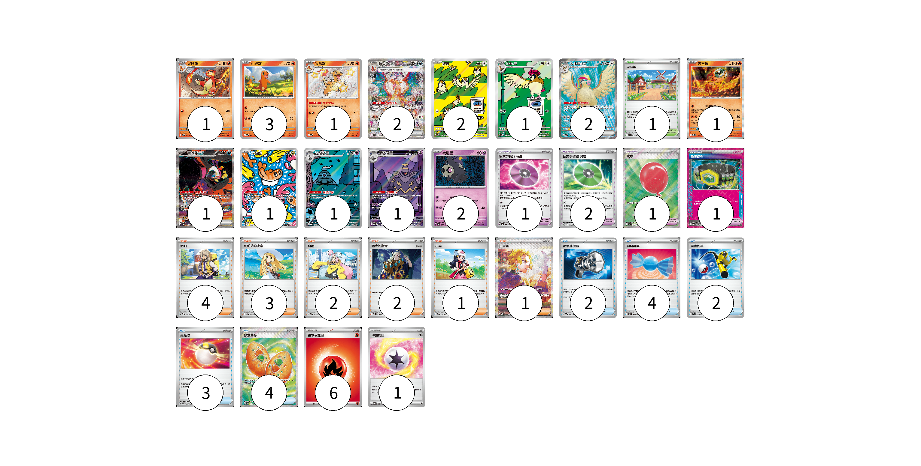 牌組構築方案 以此牌組為基礎新構築牌組 顯示卡面 顯示列表 寶可夢卡(19) 1 3 1 2 2 1 2 1 1 1 1 1 2 寶可夢道具(5) 1 2 1 1 物品卡(15) 2 4 2 3 4 支援者卡(13) 4 3 2 2 1 1 競技場卡(1) 1 能量卡(7) 6 1 寶可夢卡(19) 卡牌名稱 張數 卡牌名稱 張數 火恐龍 M2 012/080 01 小火龍 SV2a 004/165 03 火恐龍 SV4a 211/190 01 噴火龍ex SV3 134/108 02 波波 SV3 118/108 02 比比鳥 SV3 119/108 01 大比鳥ex SV3 128/108 02 古玉魚 SV8a 025/187 01 吉雉雞ex SV6a 089/064 01 米立龍 SV6 112/101 01 彷徨夜靈 SV6a 069/064 01 黑夜魔靈 SV6a 070/064 01 夜巡靈 SV8a 064/187 02 寶可夢道具(5) 卡牌名稱 張數 卡牌名稱 張數 招式學習器 衰退 SV4K 063/066 01 招式學習器 演進 SVTL 017/021 02 氣球 M1L 084/063 01 極限腰帶 SV8a 159/187 01 物品卡(15) 卡牌名稱 張數 卡牌名稱 張數 反擊捕捉器 SV8a 139/187 02 神奇糖果 SVOM 014/021 04 厲害釣竿 SVTL 009/021 02 高級球 SVTH 011/018 03 好友寶芬 M1S 081/063 04 支援者卡(13) 卡牌名稱 張數 卡牌名稱 張數 派帕 SVK 035/042 04 莉莉艾的決意 MBD 021/022 03 奇樹 SVK 031/042 02 老大的指令 MBG 021/022 02 小光 M2 077/080 01 白蕾雅 SV7 132/102 01 競技場卡(1) 卡牌名稱 張數 卡牌名稱 張數 深缽鎮 SVK 039/042 01 能量卡(7) 卡牌名稱 張數 卡牌名稱 張數 基本【火】能量 M-P FIR 06 薄霧能量 SV8a 186/187 01 以此牌組為基礎新構築牌組 牌組編碼 RryAXA-xTQIDI-TODkCK copy 列印牌組單 牌組編碼已複製 分享至SNS