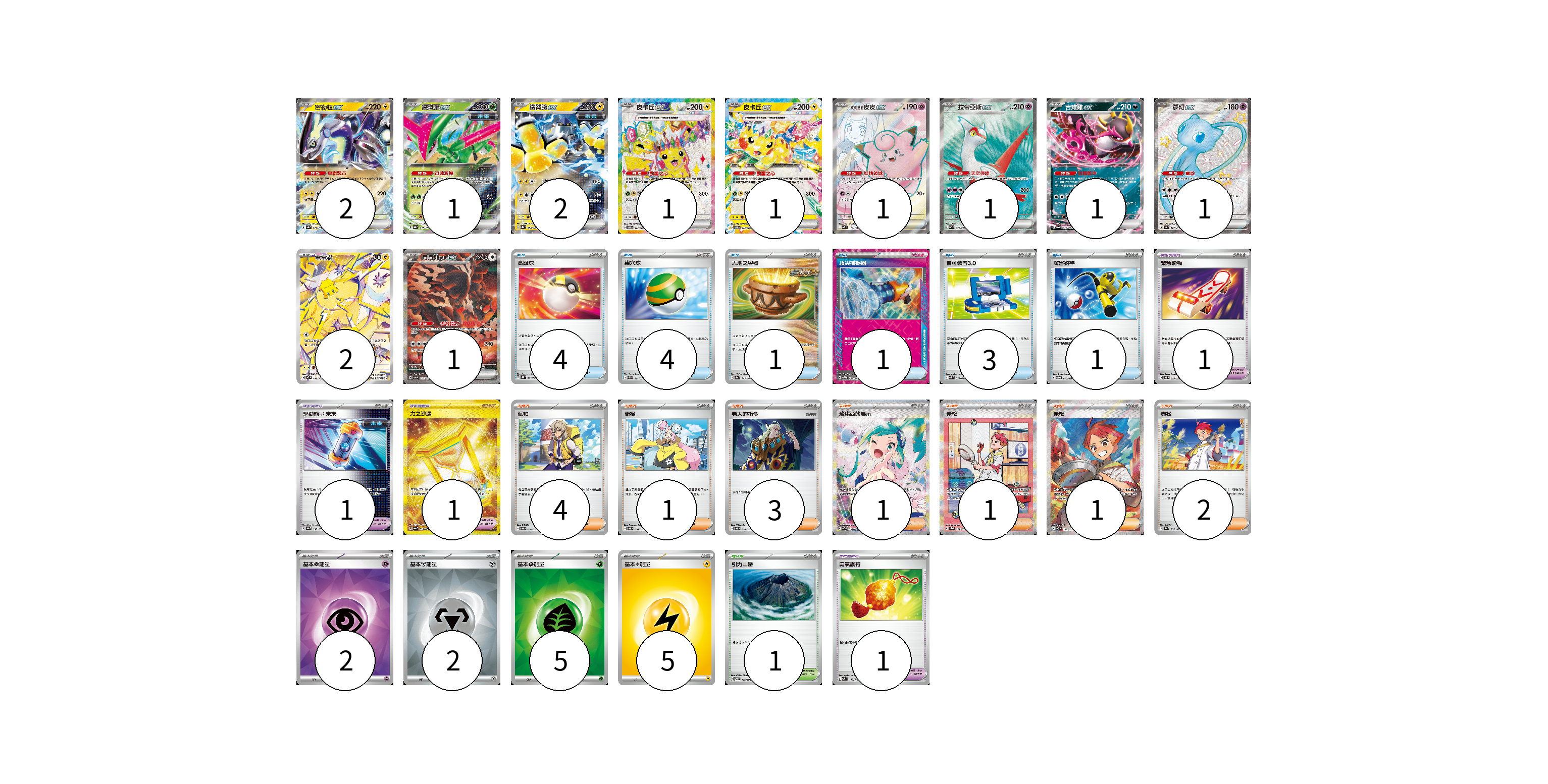 牌組構築方案 以此牌組為基礎新構築牌組 顯示卡面 顯示列表 寶可夢卡(14) 2 1 2 1 1 1 1 1 1 2 1 寶可夢道具(4) 1 1 1 1 物品卡(14) 4 4 1 1 3 1 支援者卡(13) 4 1 3 1 1 1 2 競技場卡(1) 1 能量卡(14) 2 2 5 5 寶可夢卡(14) 卡牌名稱 張數 卡牌名稱 張數 密勒頓ex SV4a 071/190 02 鐵斑葉ex SV8a 016/187 01 鐵臂膀ex SV8a 054/187 02 皮卡丘ex SV8 122/106 01 皮卡丘ex SV8 033/106 01 莉莉艾的皮皮ex SV9 115/100 01 拉帝亞斯ex SV7a 078/064 01 吉雉雞ex SV6a 038/064 01 夢幻ex SV4a 327/190 01 電電蟲 SV7 108/102 02 月月熊 赫月ex SV8a 225/187 01 寶可夢道具(4) 卡牌名稱 張數 卡牌名稱 張數 緊急滑板 SVOD 015/020 01 驅勁能量 未來 SV8a 158/187 01 力之沙漏 SV6a 094/064 01 勇氣護符 SVM 142/175 01 物品卡(14) 卡牌名稱 張數 卡牌名稱 張數 高級球 SVHK 013/022 04 巢穴球 SVEL 011/020 04 大地之容器 SV8a 143/187 01 頂尖捕捉器 SV5M 062/071 01 寶可裝置3.0 SVK 021/042 03 厲害釣竿 SVOD 010/020 01 支援者卡(13) 卡牌名稱 張數 卡牌名稱 張數 派帕 SVOD 018/020 04 奇樹 SVOD 016/020 01 老大的指令 SVOD 019/020 03 琉琪亞的展示 SV7a 091/064 01 赤松 SV8a 227/187 01 赤松 SV7 123/102 01 赤松 SV8a 163/187 02 競技場卡(1) 卡牌名稱 張數 卡牌名稱 張數 引力山岳 SV8 106/106 01 能量卡(14) 卡牌名稱 張數 卡牌名稱 張數 基本【超】能量 SVOD PSY 02 基本【鋼】能量 SVOD MET 02 基本【草】能量 SVK GRA 05 基本【雷】能量 SVHM LIG 05 以此牌組為基礎新構築牌組 牌組編碼 SBhPML-XWtCAk-tNFuaP copy 列印牌組單 牌組編碼已複製 分享至SNS