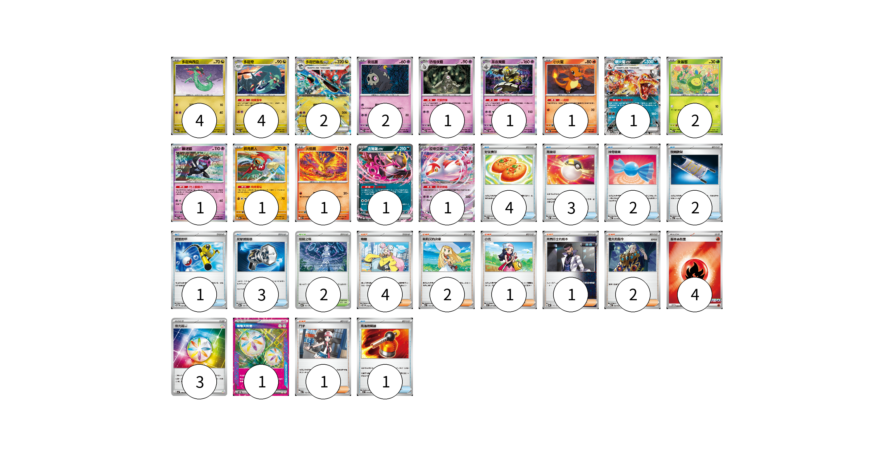 牌組構築方案 以此牌組為基礎新構築牌組 顯示卡面 顯示列表 寶可夢卡(23) 4 4 2 2 1 1 1 1 2 1 1 1 1 1 物品卡(16) 4 3 2 2 1 3 1 支援者卡(11) 4 2 1 1 2 1 競技場卡(2) 2 能量卡(8) 4 3 1 寶可夢卡(23) 卡牌名稱 張數 卡牌名稱 張數 多龍梅西亞 M2a 132/193 04 多龍奇 M2a 133/193 04 多龍巴魯托ex M2a 134/193 02 夜巡靈 M2a 072/193 02 彷徨夜靈 M2a 073/193 01 黑夜魔靈 M2a 074/193 01 小火龍 M2 011/080 01 噴火龍ex SV4a 115/190 01 含羞苞 M2a 011/193 02 願增猿 M2a 081/193 01 摔角鷹人 SV8a 084/187 01 火焰鳥 M2 014/080 01 吉雉雞ex SVOD 004/020 01 拉帝亞斯ex M2a 075/193 01 物品卡(16) 卡牌名稱 張數 卡牌名稱 張數 好友寶芬 M2a 153/193 04 高級球 MBD 014/022 03 神奇糖果 MBG 013/022 02 夜間擔架 M2a 159/193 02 厲害釣竿 SVOD 010/020 01 反擊捕捉器 SV8a 139/187 03 高溫燃燒器 M2 074/080 01 支援者卡(11) 卡牌名稱 張數 卡牌名稱 張數 奇樹 SVOM 018/021 04 莉莉艾的決意 M2a 175/193 02 小光 M2 077/080 01 弗圖博士的劇本 SV8a 175/187 01 老大的指令 MBD 020/022 02 鬥子 M2a 172/193 01 競技場卡(2) 卡牌名稱 張數 卡牌名稱 張數 阻礙之塔 SV8a 181/187 02 能量卡(8) 卡牌名稱 張數 卡牌名稱 張數 基本【火】能量 M-P 032/M-P 04 夜光能量 SV4a 190/190 03 新衝天能量 SV5K 071/071 01 以此牌組為基礎新構築牌組 牌組編碼 TIUvKr-wCjHir-ZeNGdE copy 列印牌組單 牌組編碼已複製 分享至SNS
