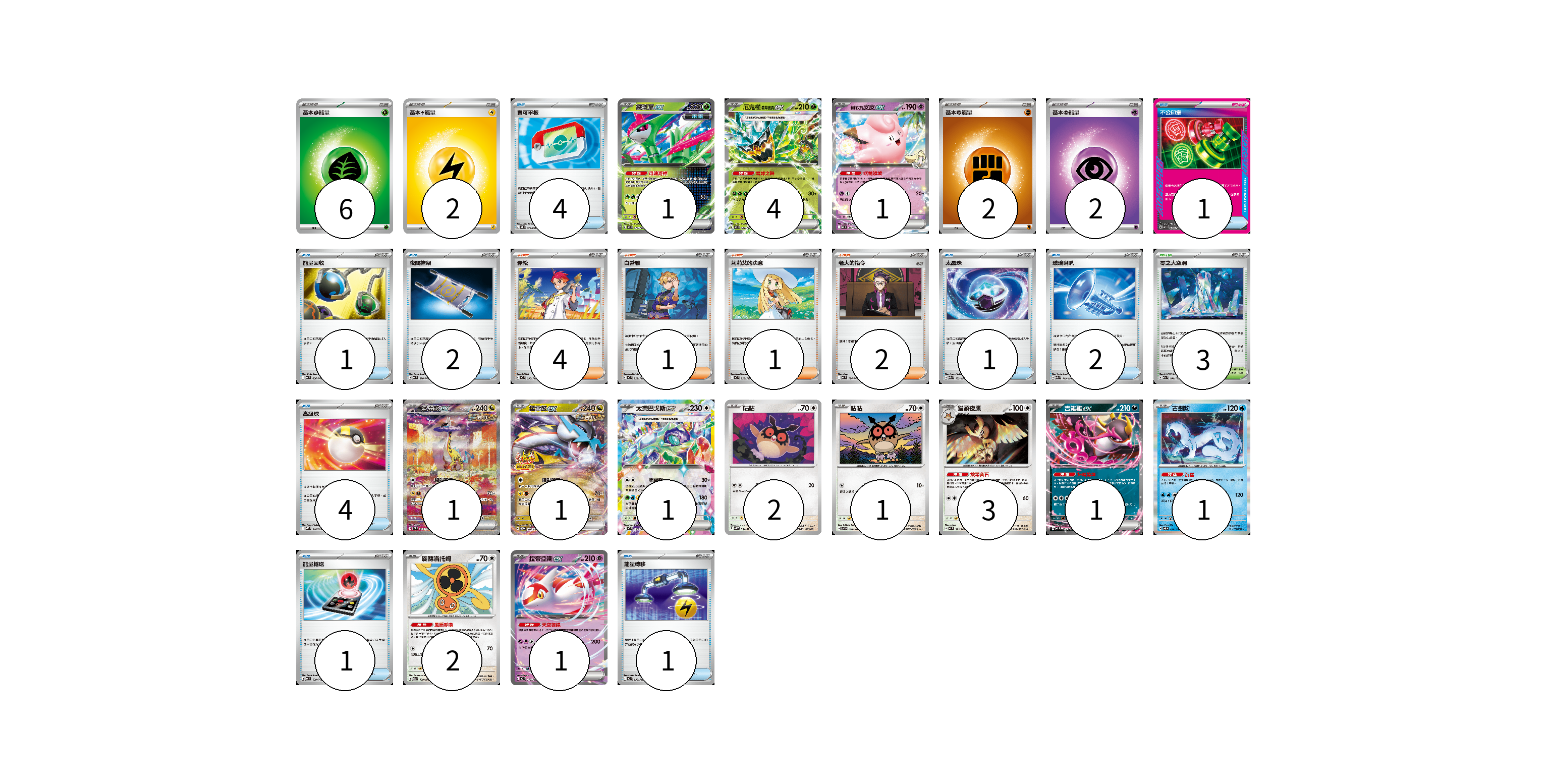 牌組構築方案 以此牌組為基礎新構築牌組 顯示卡面 顯示列表 寶可夢卡(20) 1 4 1 1 1 1 2 1 3 1 1 2 1 物品卡(17) 4 1 1 2 1 2 4 1 1 支援者卡(8) 4 1 1 2 競技場卡(3) 3 能量卡(12) 6 2 2 2 寶可夢卡(20) 卡牌名稱 張數 卡牌名稱 張數 鐵斑葉ex MC 077/742 01 厄鬼椪 碧草面具ex MC 082/742 04 莉莉艾的皮皮ex MC 287/742 01 猛雷鼓ex SV5K 095/071 01 猛雷鼓ex SV-P 081/SV-P 01 太樂巴戈斯ex MC 630/742 01 咕咕 SV5K 054/071 02 咕咕 SV7 076/102 01 貓頭夜鷹 MC 573/742 03 吉雉雞ex MC 489/742 01 古劍豹 SV8 032/106 01 旋轉洛托姆 M2a 139/193 02 拉帝亞斯ex MC 312/742 01 物品卡(17) 卡牌名稱 張數 卡牌名稱 張數 寶可平板 M3 070/080 04 不公印章 MC 633/742 01 能量回收 MC 636/742 01 夜間擔架 MC 670/742 02 太晶珠 M2a 152/193 01 玻璃喇叭 M2a 149/193 02 高級球 MBD 014/022 04 能量輸送 MC 639/742 01 能量轉移 MC 638/742 01 支援者卡(8) 卡牌名稱 張數 卡牌名稱 張數 赤松 MC 696/742 04 白蕾雅 MC 722/742 01 莉莉艾的決意 MC 729/742 01 老大的指令 MC 724/742 02 競技場卡(3) 卡牌名稱 張數 卡牌名稱 張數 零之大空洞 M2a 184/193 03 能量卡(12) 卡牌名稱 張數 卡牌名稱 張數 基本【草】能量 MJ GRA 06 基本【雷】能量 MJ LIG 02 基本【鬥】能量 MC FIG 02 基本【超】能量 MBD PSY 02 以此牌組為基礎新構築牌組 牌組編碼 TNtegq-kThyJy-xfjKSO copy 列印牌組單 牌組編碼已複製 分享至SNS