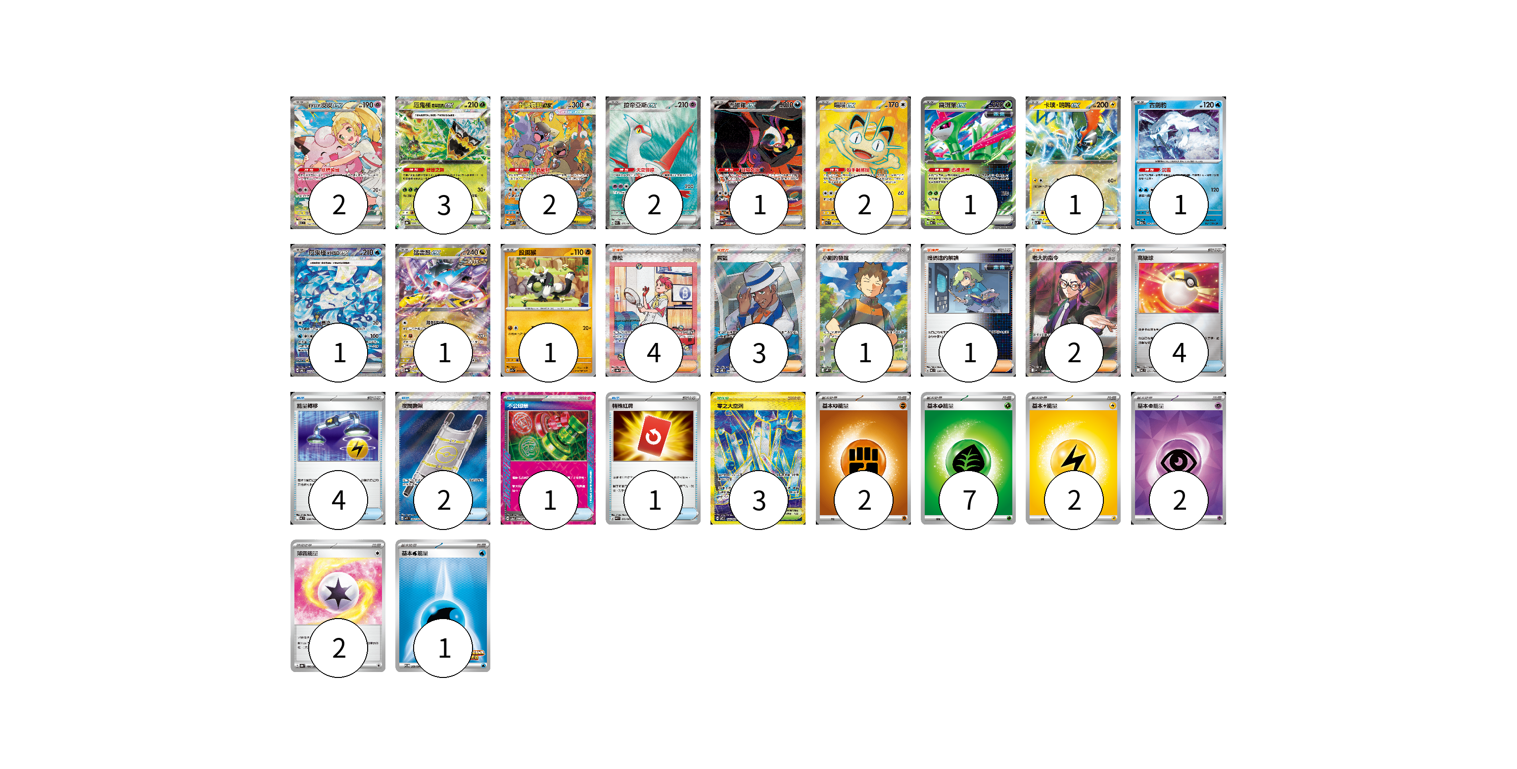 牌組構築方案 以此牌組為基礎新構築牌組 顯示卡面 顯示列表 寶可夢卡(18) 2 3 2 2 1 2 1 1 1 1 1 1 物品卡(12) 4 4 2 1 1 支援者卡(11) 4 3 1 1 2 競技場卡(3) 3 能量卡(16) 2 7 2 2 2 1 寶可夢卡(18) 卡牌名稱 張數 卡牌名稱 張數 莉莉艾的皮皮ex MC 765/742 02 厄鬼椪 碧草面具ex SV8a 020/187 03 超級袋獸ex M1S 089/063 02 拉帝亞斯ex SV7a 078/064 02 吉雉雞ex SV6a 089/064 01 喵喵ex M3 100/080 02 鐵斑葉ex MC 077/742 01 卡璞・鳴鳴ex SVM 046/175 01 古劍豹 M2a 043/193 01 厄鬼椪 水井面具ex SV6 127/101 01 猛雷鼓ex SV8a 124/187 01 投擲猴 SV7a 031/064 01 物品卡(12) 卡牌名稱 張數 卡牌名稱 張數 高級球 MC 651/742 04 能量轉移 MC 638/742 04 夜間擔架 M1L 083/063 02 不公印章 SV5a 053/066 01 特殊紅牌 M4 072/083 01 支援者卡(11) 卡牌名稱 張數 卡牌名稱 張數 赤松 SV8a 227/187 04 席藍 SV8 127/106 03 小剛的發掘 SV9 123/100 01 暗碼迷的解讀 MC 698/742 01 老大的指令(烏羽) MC 760/742 02 競技場卡(3) 卡牌名稱 張數 卡牌名稱 張數 零之大空洞 SV7 135/102 03 能量卡(16) 卡牌名稱 張數 卡牌名稱 張數 基本【鬥】能量 MC FIG 02 基本【草】能量 MJ GRA 07 基本【雷】能量 MJ LIG 02 基本【超】能量 SVOD PSY 02 薄霧能量 SV8a 186/187 02 基本【水】能量 SV-P 259/SV-P 01 以此牌組為基礎新構築牌組 牌組編碼 UIAAZa-OMbPsg-mPZjZK copy 列印牌組單 牌組編碼已複製 分享至SNS
