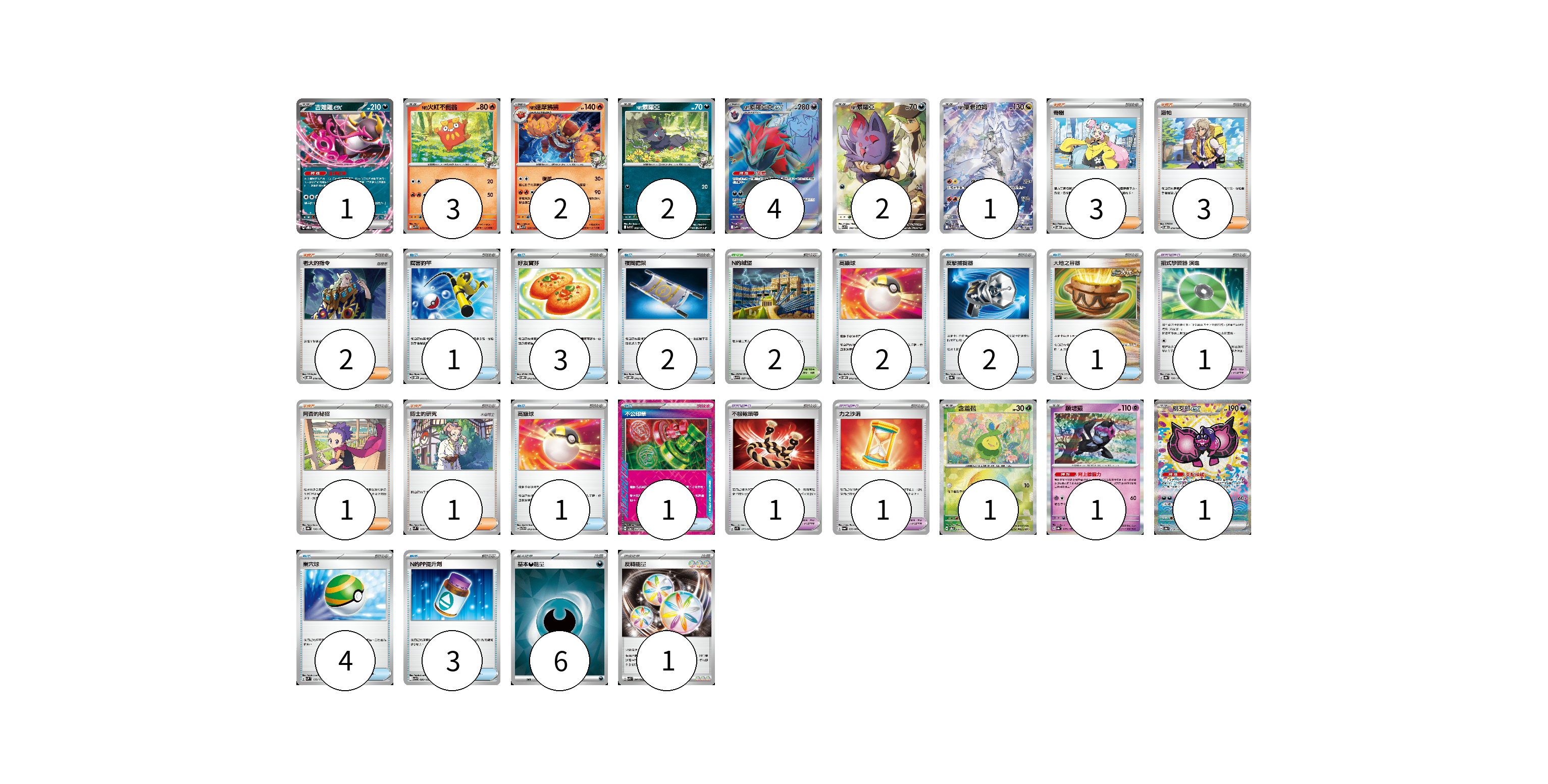 牌組構築方案 以此牌組為基礎新構築牌組 顯示卡面 顯示列表 寶可夢卡(18) 1 3 2 2 4 2 1 1 1 1 寶可夢道具(3) 1 1 1 物品卡(20) 1 3 2 2 2 1 1 1 4 3 支援者卡(10) 3 3 2 1 1 競技場卡(2) 2 能量卡(7) 6 1 寶可夢卡(18) 卡牌名稱 張數 卡牌名稱 張數 吉雉雞ex SVOD 004/020 01 N的火紅不倒翁 SV9 015/100 03 N的達摩狒狒 SV9 016/100 02 N的索羅亞 SV9 060/100 02 N的索羅亞克ex SV9 117/100 04 N的索羅亞 SV9 108/100 02 N的萊希拉姆 SV9 109/100 01 含羞苞 SV8a 001/187 01 願增猿 SV8a 075/187 01 桃歹郎ex SV8a 219/187 01 寶可夢道具(3) 卡牌名稱 張數 卡牌名稱 張數 招式學習器 演進 SV8a 160/187 01 不服輸頭帶 SV1S 073/078 01 力之沙漏 SV6a 058/064 01 物品卡(20) 卡牌名稱 張數 卡牌名稱 張數 厲害釣竿 SVOM 011/021 01 好友寶芬 SVOM 012/021 03 夜間擔架 SVOM 016/021 02 高級球 SVOM 013/021 02 反擊捕捉器 SV8a 139/187 02 大地之容器 SV8a 143/187 01 高級球 SVTG 013/019 01 不公印章 SV5a 053/066 01 巢穴球 SVM 133/175 04 N的PP提升劑 SV9 089/100 03 支援者卡(10) 卡牌名稱 張數 卡牌名稱 張數 奇樹 SVOD 016/020 03 派帕 SVOD 018/020 03 老大的指令 SVOD 019/020 02 阿杏的秘招 SV8a 166/187 01 博士的研究 SVM 169/175 01 競技場卡(2) 卡牌名稱 張數 卡牌名稱 張數 N的城堡 SV9 097/100 02 能量卡(7) 卡牌名稱 張數 卡牌名稱 張數 基本【惡】能量 SVOM DAR 06 反轉能量 SVK 041/042 01 以此牌組為基礎新構築牌組 牌組編碼 UohduK-zgjZWt-TtXmeY copy 列印牌組單 牌組編碼已複製 分享至SNS