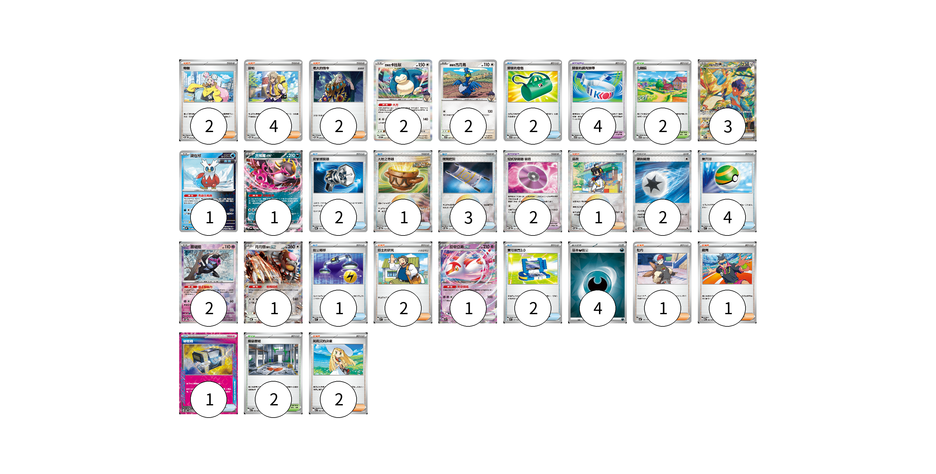 牌組構築方案 以此牌組為基礎新構築牌組 顯示卡面 顯示列表 寶可夢卡(13) 2 2 3 1 1 2 1 1 寶可夢道具(6) 4 2 物品卡(16) 2 2 1 3 4 1 2 1 支援者卡(15) 2 4 2 1 2 1 1 2 競技場卡(4) 2 2 能量卡(6) 2 4 寶可夢卡(13) 卡牌名稱 張數 卡牌名稱 張數 赫普的卡比獸 SV9 075/100 02 赫普的古月鳥 SV9 087/100 02 赫普的蒼響ex SV9 128/100 03 鐵包袱 SV8a 047/187 01 吉雉雞ex SV8a 104/187 01 願增猿 SV8a 075/187 02 月月熊 赫月ex SV8a 134/187 01 拉帝亞斯ex SV7a 019/064 01 寶可夢道具(6) 卡牌名稱 張數 卡牌名稱 張數 赫普的講究頭帶 SV9 092/100 04 招式學習器 衰退 SV8a 161/187 02 物品卡(16) 卡牌名稱 張數 卡牌名稱 張數 赫普的包包 SV9 091/100 02 反擊捕捉器 SV8a 139/187 02 大地之容器 SV8a 143/187 01 夜間擔架 SV8a 151/187 03 巢穴球 SVM 133/175 04 能量轉移 SVM 127/175 01 寶可裝置3.0 SVK 021/042 02 秘密箱 SV6 092/101 01 支援者卡(15) 卡牌名稱 張數 卡牌名稱 張數 奇樹 SVOD 016/020 02 派帕 SVOD 018/020 04 老大的指令 SVOD 019/020 02 烏栗 SV8a 169/187 01 博士的研究 SVM 164/175 02 牡丹 SV4a 182/190 01 裁判 SV9a 062/063 01 莉莉艾的決意 M1L 062/063 02 競技場卡(4) 卡牌名稱 張數 卡牌名稱 張數 化朗鎮 SV9 099/100 02 險惡廢墟 M1L 063/063 02 能量卡(6) 卡牌名稱 張數 卡牌名稱 張數 噴射能量 SV8a 185/187 02 基本【惡】能量 SVK DAR 04 以此牌組為基礎新構築牌組 牌組編碼 WYrHQf-NASPuK-yNSHfZ copy 列印牌組單 牌組編碼已複製 分享至SNS
