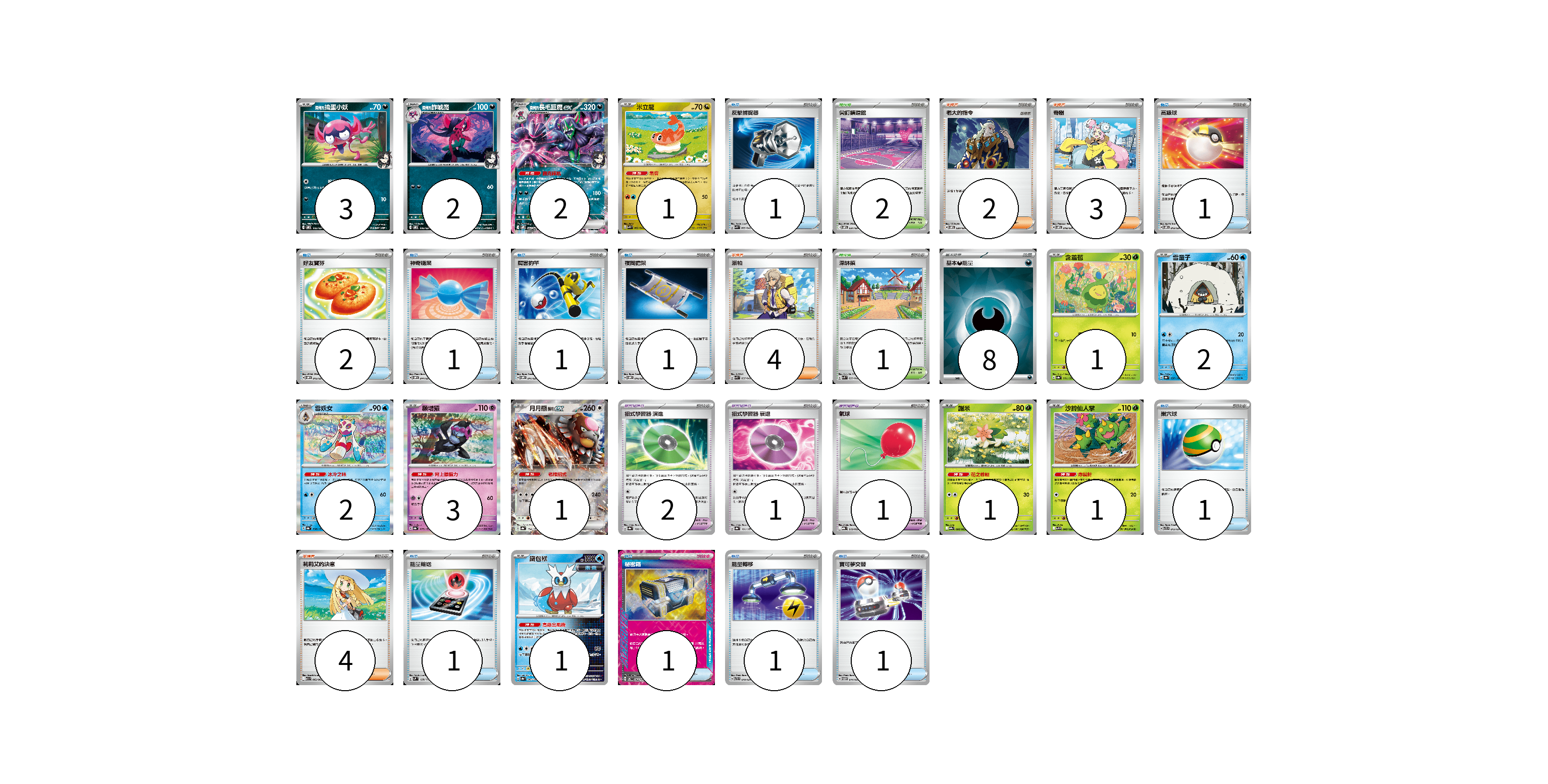牌組構築方案 以此牌組為基礎新構築牌組 顯示卡面 顯示列表 寶可夢卡(20) 3 2 2 1 1 2 2 3 1 1 1 1 寶可夢道具(4) 2 1 1 物品卡(12) 1 1 2 1 1 1 1 1 1 1 1 支援者卡(13) 2 3 4 4 競技場卡(3) 2 1 能量卡(8) 8 寶可夢卡(20) 卡牌名稱 張數 卡牌名稱 張數 <瑪俐的>搗蛋小妖 SVOM 005/021 03 <瑪俐的>詐唬魔 SVOM 006/021 02 <瑪俐的>長毛巨魔ex SVOM 007/021 02 米立龍 SVK 002/042 01 含羞苞 SV8a 001/187 01 雪童子 SV8a 037/187 02 雪妖女 SV8a 038/187 02 願增猿 SV8a 075/187 03 月月熊 赫月ex SV8a 134/187 01 謝米 SV9a 006/063 01 沙鈴仙人掌 SV9 006/100 01 鐵包袱 SV8a 047/187 01 寶可夢道具(4) 卡牌名稱 張數 卡牌名稱 張數 招式學習器 演進 SV8a 160/187 02 招式學習器 衰退 SV8a 161/187 01 氣球 MBG 019/022 01 物品卡(12) 卡牌名稱 張數 卡牌名稱 張數 反擊捕捉器 SVK 009/042 01 高級球 SVOM 013/021 01 好友寶芬 SVOM 012/021 02 神奇糖果 SVOM 014/021 01 厲害釣竿 SVOM 011/021 01 夜間擔架 SVOM 016/021 01 巢穴球 SVTR 013/021 01 能量輸送 SVM 128/175 01 秘密箱 SV6 092/101 01 能量轉移 SVTR 010/021 01 寶可夢交替 SVTM 014/022 01 支援者卡(13) 卡牌名稱 張數 卡牌名稱 張數 老大的指令 SVOM 020/021 02 奇樹 SVOM 018/021 03 派帕 SVK 035/042 04 莉莉艾的決意 M1L 062/063 04 競技場卡(3) 卡牌名稱 張數 卡牌名稱 張數 尖釘鎮道館 SVOM 021/021 02 深缽鎮 SVK 039/042 01 能量卡(8) 卡牌名稱 張數 卡牌名稱 張數 基本【惡】能量 SVK DAR 08 以此牌組為基礎新構築牌組 牌組編碼 XEziVB-gVFBCD-YXCiRl copy 列印牌組單 牌組編碼已複製 分享至SNS