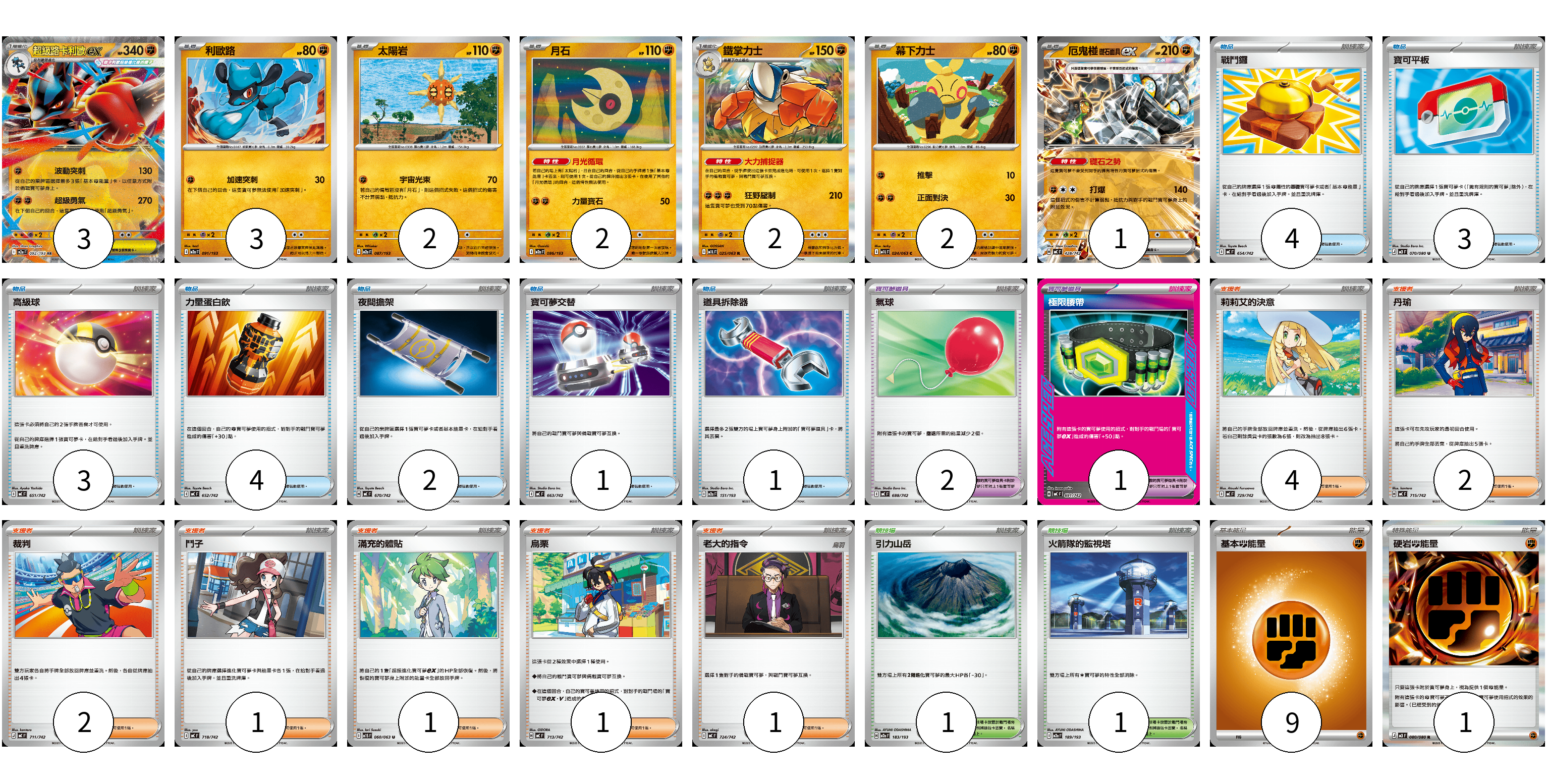 牌組構築方案 以此牌組為基礎新構築牌組 顯示卡面 顯示列表 寶可夢卡(15) 3 3 2 2 2 2 1 寶可夢道具(3) 2 1 物品卡(18) 4 3 3 4 2 1 1 支援者卡(12) 4 2 2 1 1 1 1 競技場卡(2) 1 1 能量卡(10) 9 1 寶可夢卡(15) 卡牌名稱 張數 卡牌名稱 張數 超級路卡利歐ex M2a 092/193 03 利歐路 M2a 091/193 03 太陽岩 M2a 087/193 02 月石 M2a 086/193 02 鐵掌力士 M1L 025/063 02 幕下力士 M1L 024/063 02 厄鬼椪 礎石面具ex MC 428/742 01 寶可夢道具(3) 卡牌名稱 張數 卡牌名稱 張數 氣球 MC 688/742 02 極限腰帶 MC 691/742 01 物品卡(18) 卡牌名稱 張數 卡牌名稱 張數 戰鬥鑼 MC 654/742 04 寶可平板 M3 070/080 03 高級球 MC 651/742 03 力量蛋白飲 MC 652/742 04 夜間擔架 MC 670/742 02 寶可夢交替 MC 663/742 01 道具拆除器 M2a 151/193 01 支援者卡(12) 卡牌名稱 張數 卡牌名稱 張數 莉莉艾的決意 MC 729/742 04 丹瑜 MC 715/742 02 裁判 MC 711/742 02 鬥子 MC 718/742 01 滿充的體貼 M1S 060/063 01 烏栗 MC 713/742 01 老大的指令 MC 724/742 01 競技場卡(2) 卡牌名稱 張數 卡牌名稱 張數 引力山岳 M2a 183/193 01 火箭隊的監視塔 M2a 189/193 01 能量卡(10) 卡牌名稱 張數 卡牌名稱 張數 基本【鬥】能量 MC FIG 09 硬岩【鬥】能量 M3 080/080 01 以此牌組為基礎新構築牌組 牌組編碼 XggsHu-NXXYkU-jyWMZM copy 列印牌組單 牌組編碼已複製 分享至SNS
