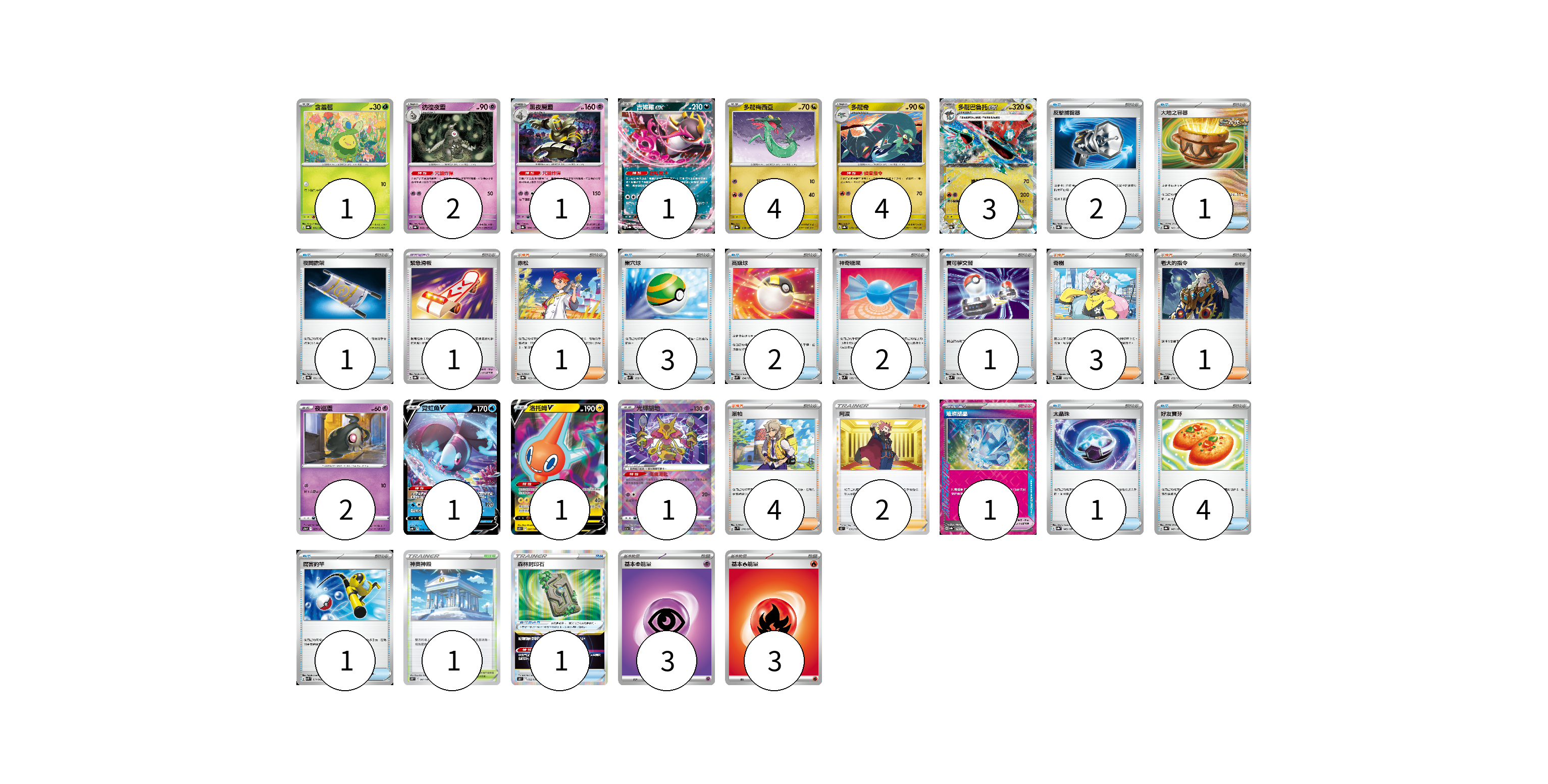 牌組構築方案 以此牌組為基礎新構築牌組 顯示卡面 顯示列表 寶可夢卡(21) 1 2 1 1 4 4 3 2 1 1 1 寶可夢道具(3) 1 1 1 物品卡(18) 2 1 1 3 2 2 1 1 4 1 支援者卡(11) 1 3 1 4 2 競技場卡(1) 1 能量卡(6) 3 3 寶可夢卡(21) 卡牌名稱 張數 卡牌名稱 張數 含羞苞 SV8a 001/187 01 彷徨夜靈 SV8a 065/187 02 黑夜魔靈 SV8a 066/187 01 吉雉雞ex SV8a 104/187 01 多龍梅西亞 SV8a 118/187 04 多龍奇 SV8a 119/187 04 多龍巴魯托ex SV8a 120/187 03 夜巡靈 S12a 057/172 02 霓虹魚V SVB 008/028 01 洛托姆V S11 037/100 01 光輝胡地 S11a 031/068 01 寶可夢道具(3) 卡牌名稱 張數 卡牌名稱 張數 緊急滑板 SV8a 153/187 01 璀璨結晶 SV8a 152/187 01 森林封印石 S12 092/098 01 物品卡(18) 卡牌名稱 張數 卡牌名稱 張數 反擊捕捉器 SV8a 139/187 02 大地之容器 SV8a 143/187 01 夜間擔架 SV8a 151/187 01 巢穴球 SVM 133/175 03 高級球 SVM 134/175 02 神奇糖果 SVM 135/175 02 寶可夢交替 SVM 136/175 01 太晶珠 SV8a 145/187 01 好友寶芬 SV8a 147/187 04 厲害釣竿 SVK 011/042 01 支援者卡(11) 卡牌名稱 張數 卡牌名稱 張數 赤松 SV8a 163/187 01 奇樹 SVM 160/175 03 老大的指令 SVM 172/175 01 派帕 SV1V 076/078 04 阿渡 S12 096/098 02 競技場卡(1) 卡牌名稱 張數 卡牌名稱 張數 神奧神殿 S10P 067/067 01 能量卡(6) 卡牌名稱 張數 卡牌名稱 張數 基本【超】能量 SVF PSY 03 基本【火】能量 SVD FIR 03 以此牌組為基礎新構築牌組 牌組編碼 YhqcCF-GhGDkm-jZCXnc copy 列印牌組單 牌組編碼已複製 分享至SNS