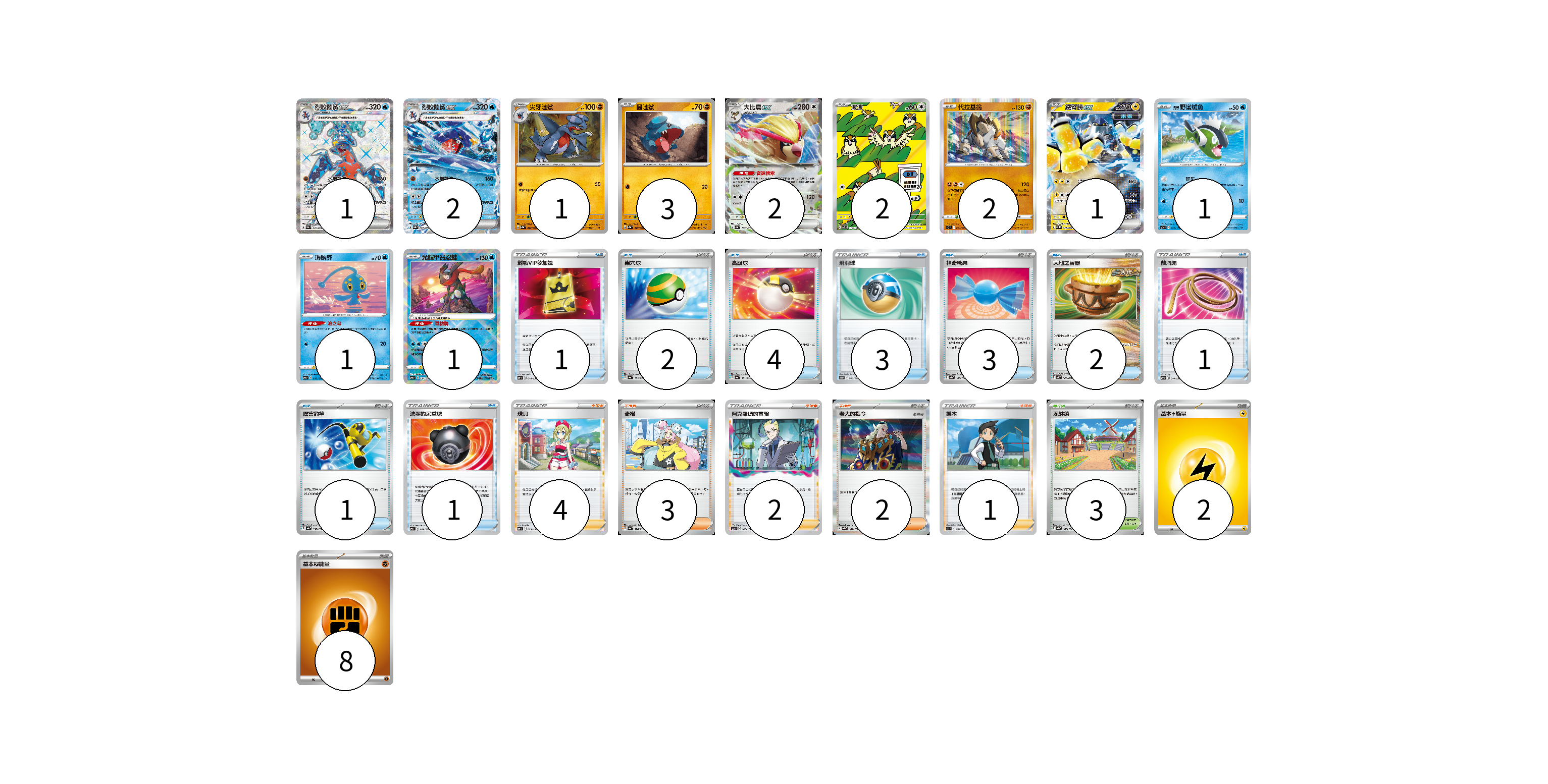 牌組構築方案 以此牌組為基礎新構築牌組 顯示卡面 顯示列表 寶可夢卡(17) 1 2 1 3 2 2 2 1 1 1 1 物品卡(18) 1 2 4 3 3 2 1 1 1 支援者卡(12) 4 3 2 2 1 競技場卡(3) 3 能量卡(10) 2 8 寶可夢卡(17) 卡牌名稱 張數 卡牌名稱 張數 烈咬陸鯊ex SV3a 076/062 01 烈咬陸鯊ex SV3a 006/062 02 尖牙陸鯊 SV3a 028/062 01 圓陸鯊 SV3a 027/062 03 大比鳥ex SV4a 139/190 02 波波 SV3 118/108 02 代拉基翁 S12 051/098 02 鐵臂膀ex SV4M 027/066 01 洗翠 野蠻鱸魚 S12a 030/172 01 瑪納霏 SVF 003/038 01 光輝甲賀忍蛙 SVF 004/038 01 物品卡(18) 卡牌名稱 張數 卡牌名稱 張數 對戰VIP參加證 SVF 018/038 01 巢穴球 SV4a 159/190 02 高級球 SV4a 161/190 04 飛羽球 S10D 063/067 03 神奇糖果 SV4a 163/190 03 大地之容器 SV4K 060/066 02 離洞繩 SVF 010/038 01 厲害釣竿 SV4a 158/190 01 洗翠的沉重球 SVF 019/038 01 支援者卡(12) 卡牌名稱 張數 卡牌名稱 張數 珠貝 SVF 025/038 04 奇樹 SV4a 174/190 03 阿克羅瑪的實驗 S12a 148/172 02 老大的指令 SV4a 181/190 02 捩木 S11 097/100 01 競技場卡(3) 卡牌名稱 張數 卡牌名稱 張數 深缽鎮 SV4a 185/190 03 能量卡(10) 卡牌名稱 張數 卡牌名稱 張數 基本【雷】能量 SVF LIG 02 基本【鬥】能量 SVD FIG 08 以此牌組為基礎新構築牌組 牌組編碼 YzVPRN-aQmEqr-hGftPw copy 列印牌組單 牌組編碼已複製 分享至SNS