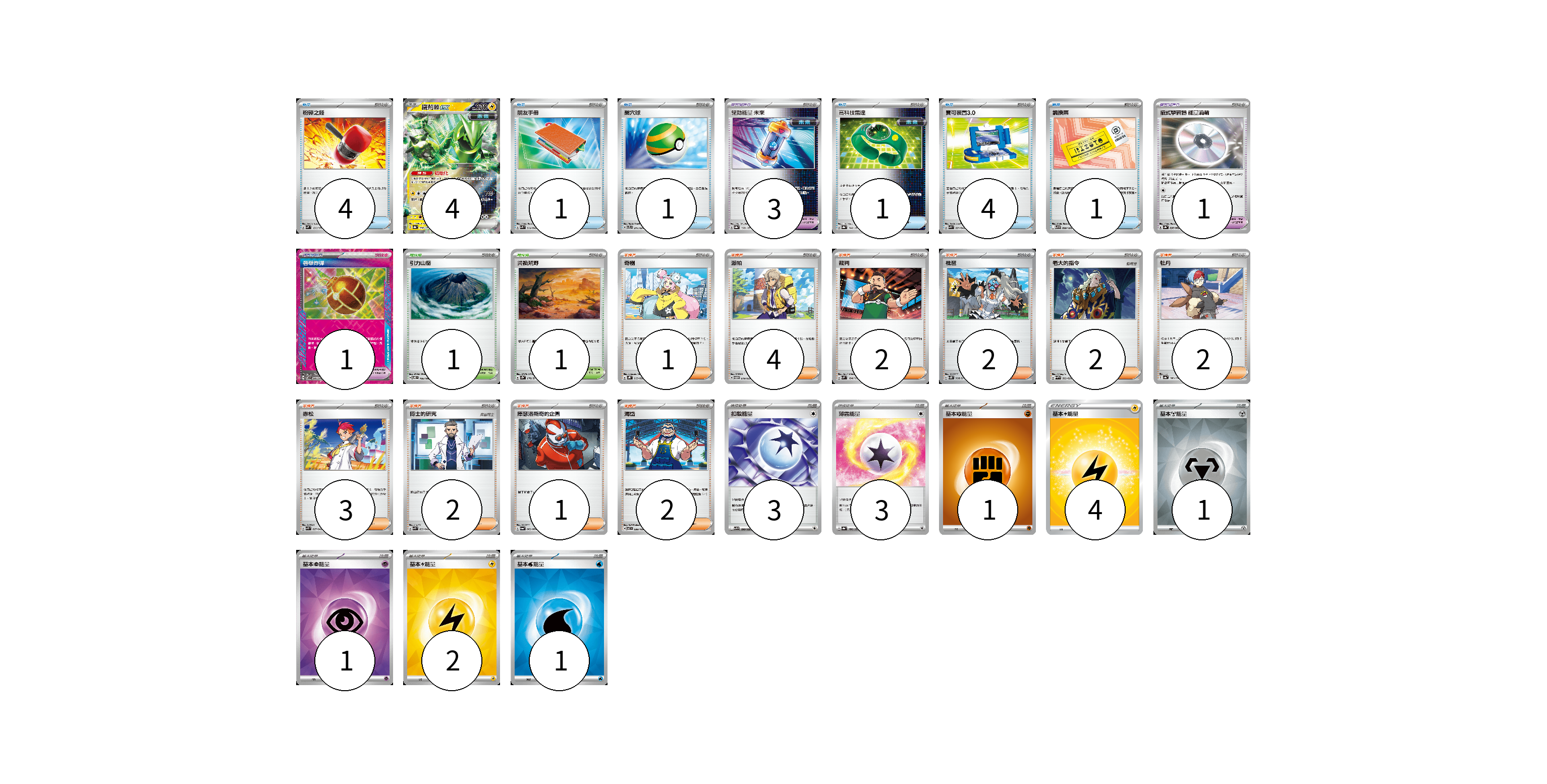 牌組構築方案 以此牌組為基礎新構築牌組 顯示卡面 顯示列表 寶可夢卡(4) 4 寶可夢道具(5) 3 1 1 物品卡(12) 4 1 1 1 4 1 支援者卡(21) 1 4 2 2 2 2 3 2 1 2 競技場卡(2) 1 1 能量卡(16) 3 3 1 4 1 1 2 1 寶可夢卡(4) 卡牌名稱 張數 卡牌名稱 張數 鐵荊棘ex SV8a 056/187 04 寶可夢道具(5) 卡牌名稱 張數 卡牌名稱 張數 驅勁能量 未來 SV8a 158/187 03 招式學習器 能量渦輪 SV3a 056/062 01 奢華炸彈 SV7 096/102 01 物品卡(12) 卡牌名稱 張數 卡牌名稱 張數 粉碎之錘 SVM 131/175 04 朋友手冊 SVK 014/042 01 巢穴球 SVTL 011/021 01 高科技雷達 SV8a 144/187 01 寶可裝置3.0 SVK 021/042 04 調換票 SV9 090/100 01 支援者卡(21) 卡牌名稱 張數 卡牌名稱 張數 奇樹 SVHK 019/022 01 派帕 SVTM 019/022 04 裁判 SVM 154/175 02 枇琶 SV5K 068/071 02 老大的指令 SVHM 022/022 02 牡丹 SV4a 182/190 02 赤松 SVK 027/042 03 博士的研究 SVK 033/042 02 庫瑟洛斯奇的企圖 SV6a 062/064 01 海岱 SV7 099/102 02 競技場卡(2) 卡牌名稱 張數 卡牌名稱 張數 引力山岳 SV8 106/106 01 災禍荒野 SV2D 070/071 01 能量卡(16) 卡牌名稱 張數 卡牌名稱 張數 扣殺能量 SV9 100/100 03 薄霧能量 SV8a 186/187 03 基本【鬥】能量 SVTG FIG 01 基本【雷】能量 SI LIG 04 基本【鋼】能量 SVOD MET 01 基本【超】能量 SVOD PSY 01 基本【雷】能量 SVK LIG 02 基本【水】能量 SVK WAT 01 以此牌組為基礎新構築牌組 牌組編碼 ZjTaFm-jTFWlQ-ZFVvYo copy 列印牌組單 牌組編碼已複製 分享至SNS