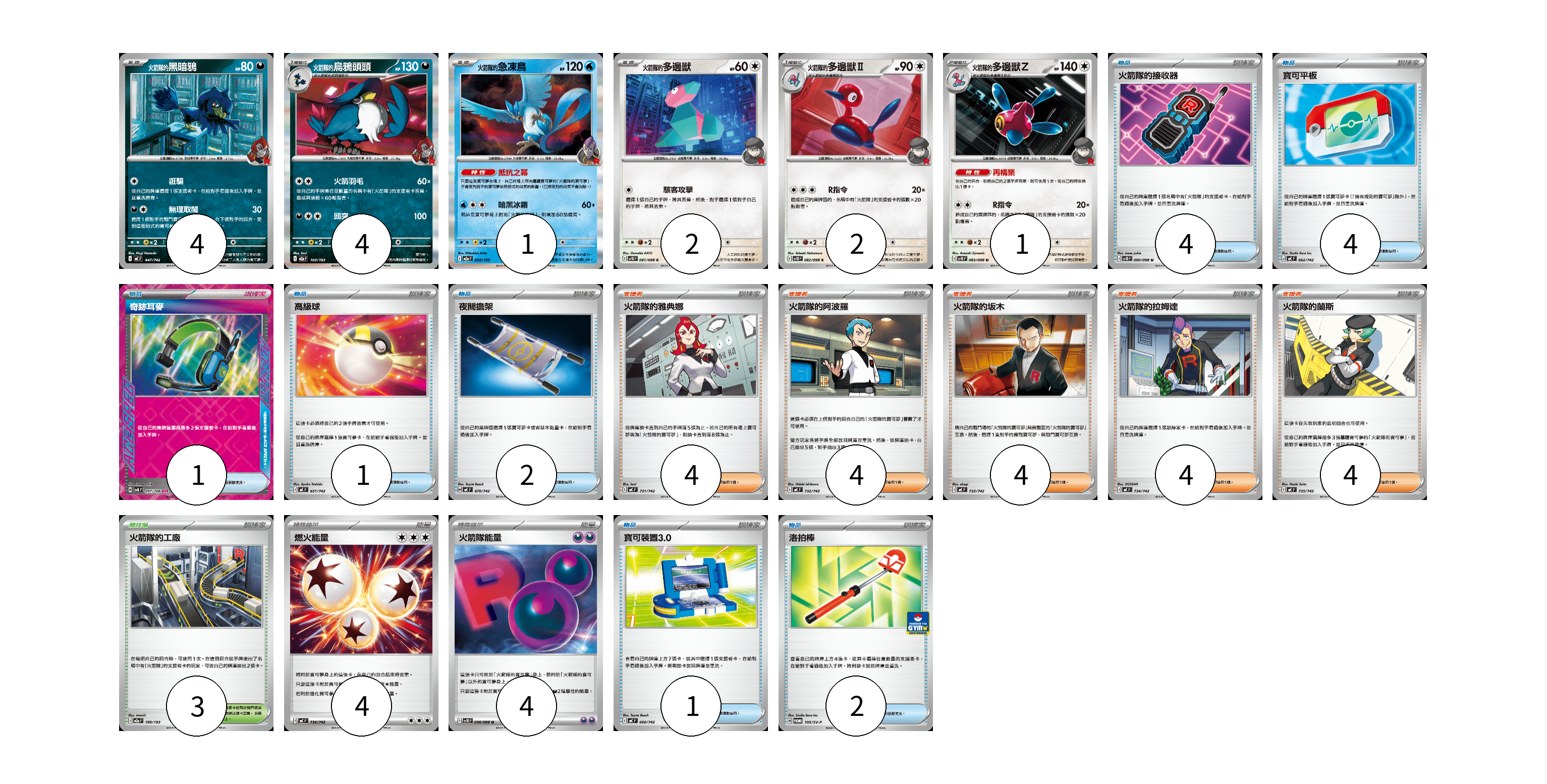 卡牌名稱 張數