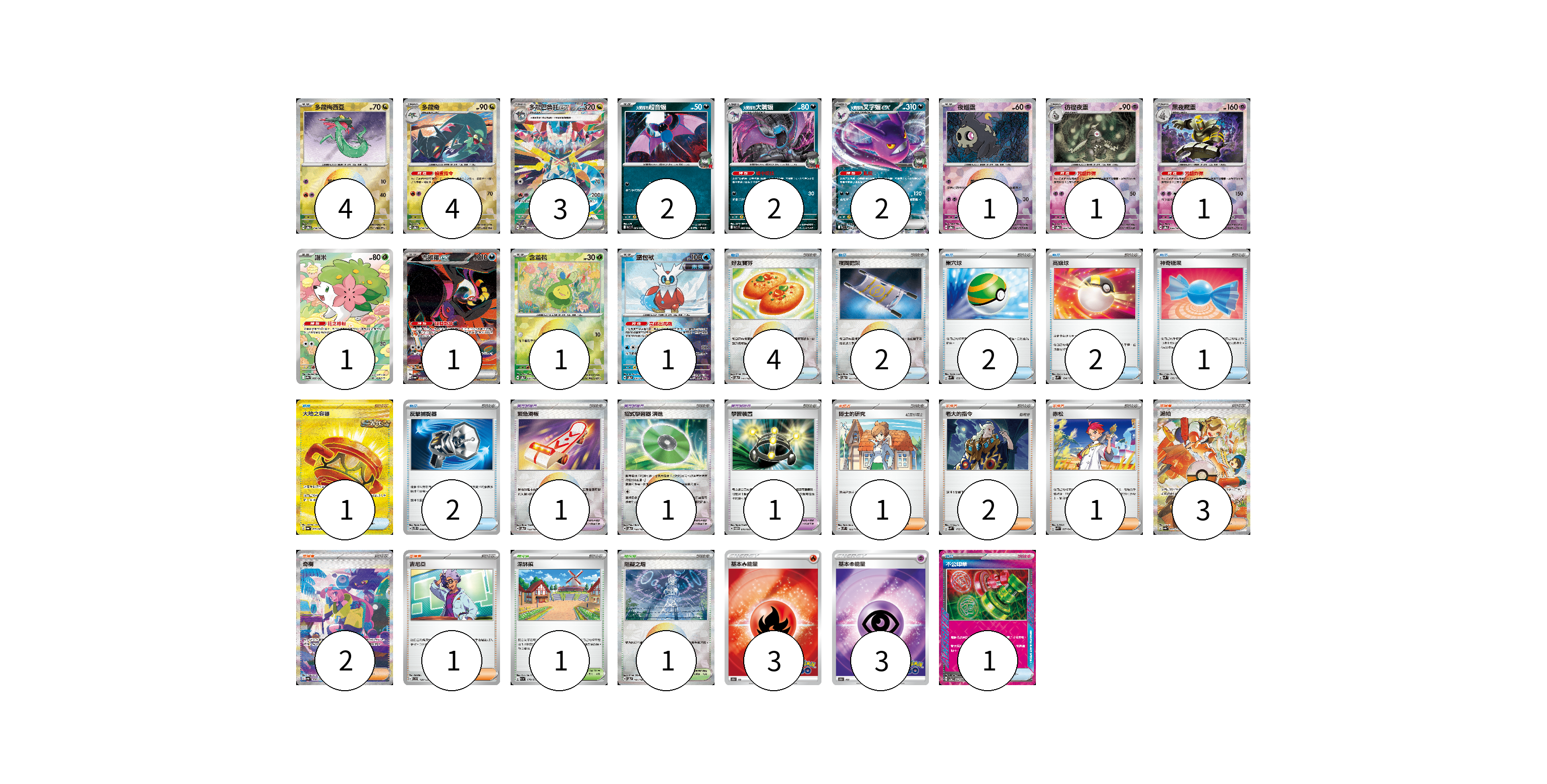 牌組構築方案 以此牌組為基礎新構築牌組 顯示卡面 顯示列表 寶可夢卡(24) 4 4 3 2 2 2 1 1 1 1 1 1 1 寶可夢道具(3) 1 1 1 物品卡(15) 4 2 2 2 1 1 2 1 支援者卡(10) 1 2 1 3 2 1 競技場卡(2) 1 1 能量卡(6) 3 3 寶可夢卡(24) 卡牌名稱 張數 卡牌名稱 張數 多龍梅西亞 SV8a 118/187 04 多龍奇 SV8a 119/187 04 多龍巴魯托ex SV8a 221/187 03 <火箭隊的>超音蝠 SV10 064/098 02 <火箭隊的>大嘴蝠 SV10 065/098 02 <火箭隊的>叉字蝠ex SV10 066/098 02 夜巡靈 SV8a 064/187 01 彷徨夜靈 SV8a 065/187 01 黑夜魔靈 SV8a 066/187 01 謝米 SV9a 066/063 01 吉雉雞ex SV6a 089/064 01 含羞苞 SV8a 001/187 01 鐵包袱 SV8a 047/187 01 寶可夢道具(3) 卡牌名稱 張數 卡牌名稱 張數 緊急滑板 SV8a 153/187 01 招式學習器 演進 SV8a 160/187 01 學習裝置 SVTM 016/022 01 物品卡(15) 卡牌名稱 張數 卡牌名稱 張數 好友寶芬 SV8a 147/187 04 夜間擔架 SV8a 151/187 02 巢穴球 SVM 133/175 02 高級球 SVM 134/175 02 神奇糖果 SVM 135/175 01 大地之容器 SV6a 093/064 01 反擊捕捉器 SVTS 009/022 02 不公印章 SV5a 053/066 01 支援者卡(10) 卡牌名稱 張數 卡牌名稱 張數 博士的研究 SVM 166/175 01 老大的指令 SVM 172/175 02 赤松 SVK 027/042 01 派帕 SV4a 353/190 03 奇樹 SV4a 350/190 02 吉尼亞 SVD 129/139 01 競技場卡(2) 卡牌名稱 張數 卡牌名稱 張數 深缽鎮 SV1a 070/073 01 阻礙之塔 SV8a 181/187 01 能量卡(6) 卡牌名稱 張數 卡牌名稱 張數 基本火能量 S10b FIR 03 基本超能量 S10b PSY 03 以此牌組為基礎新構築牌組 牌組編碼 aqGXjS-jIeWBq-cIbWMx copy 列印牌組單 牌組編碼已複製 分享至SNS